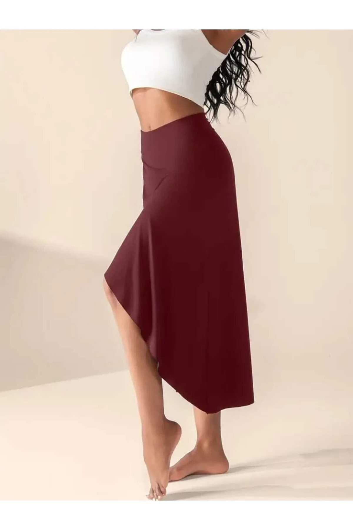 Kadın Yüksek Bel Cepli Asimetrik Yırtmaçlı İçi Şortlu Taytlı Etek - Bordo