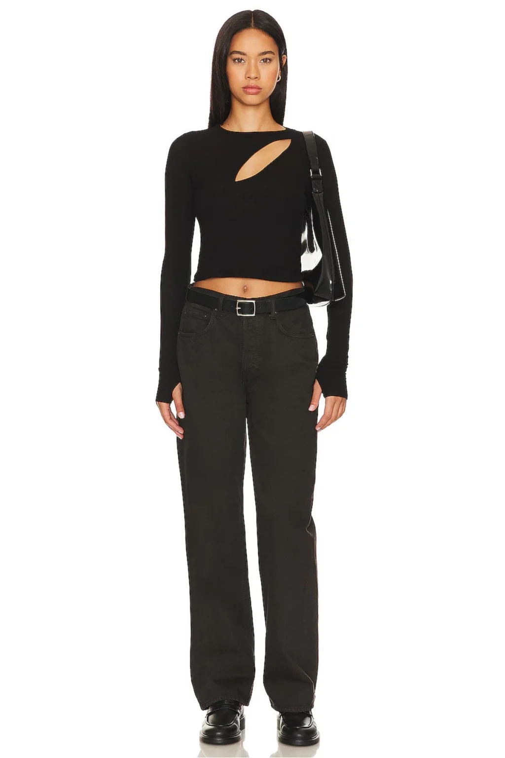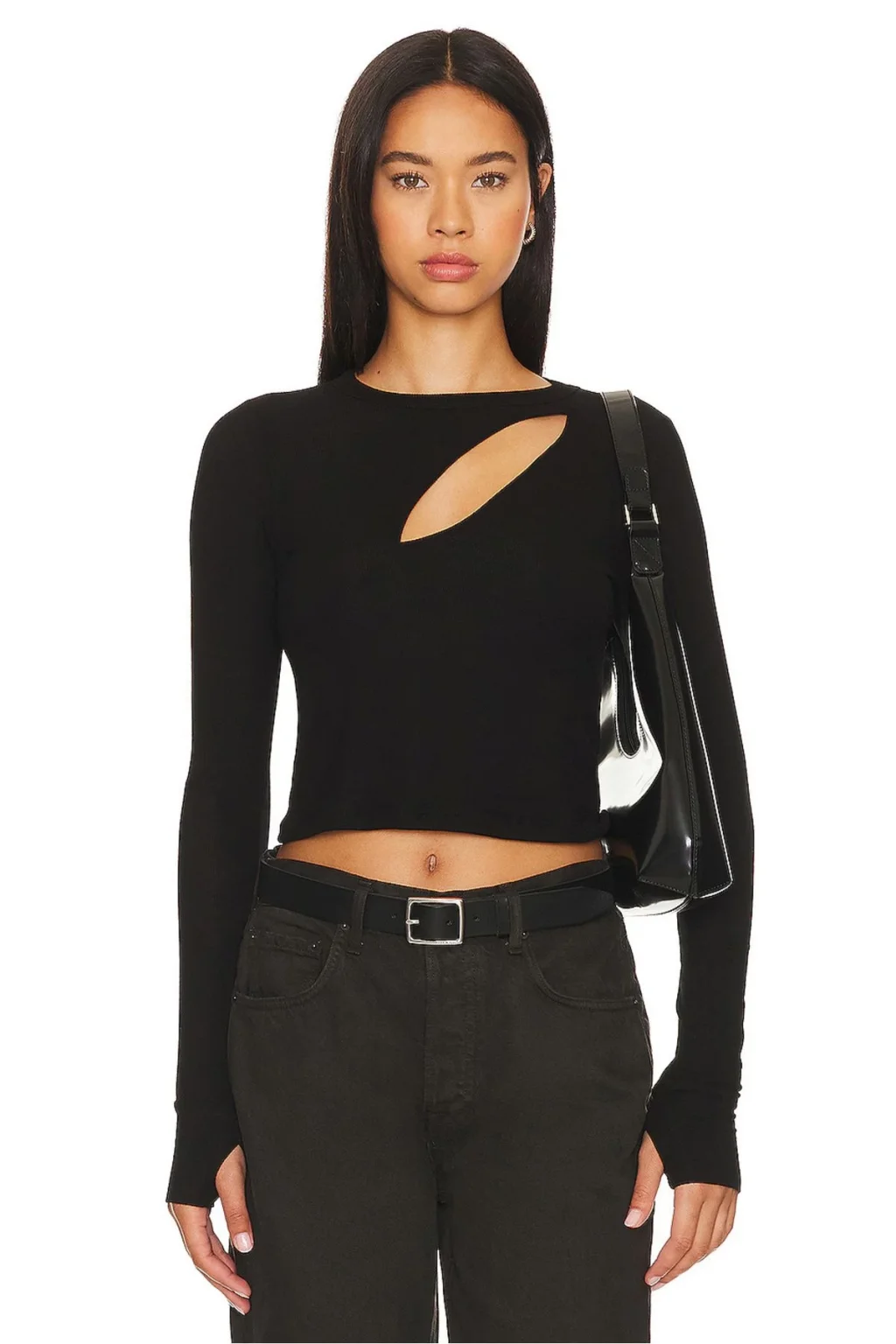 Görünümünüze anında iddialı bir hava katacak bu siyah dekolteli crop bluz, gardırobunuzun en özel parçalarından biri olacak. Parmak geçmeli detayıyla fark yaratan bu üstü, yüksek bel kargo pantolonlar, mini etekler veya bol paça kumaş pantolonlarla kombinleyerek gece şıklığınızı tamamlayabilirsiniz.