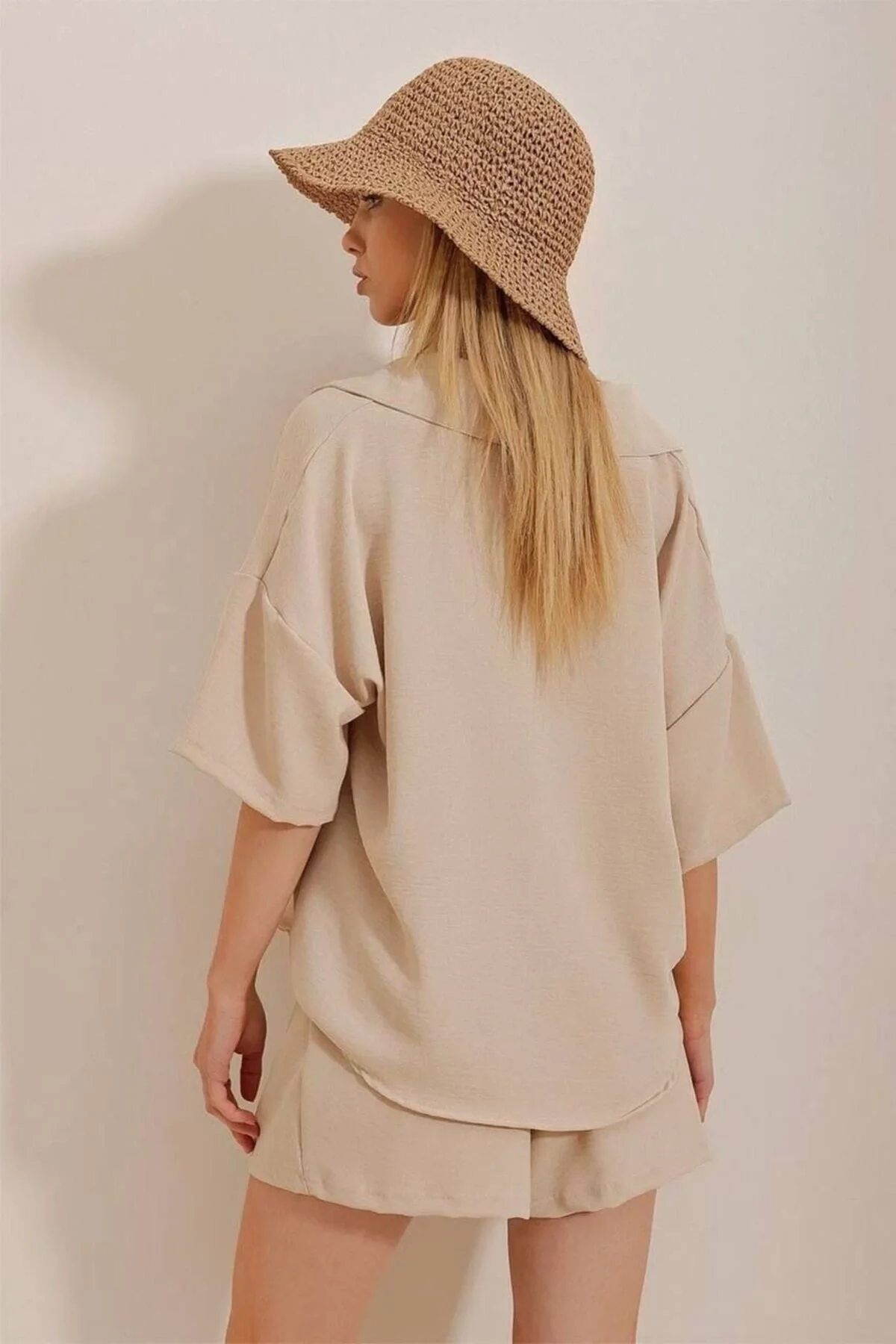 Çift cepli tasarımı ile hem şıklığı hem de kullanışlılığı bir arada sunar ; Gömlek ve şort kombinasyonu, rahatlığı ve stil sahibi görünümüyle dikkat çeker ; Kuşak detayı sayesinde belinizi vurgulayarak feminen bir siluet oluşturur ; Boru paça kesimi ile modern ve şık bir görünüm sağlar ; Düz tasarımıyla sade ve zamansız bir tarz sunar ; Tüm yaş gruplarına hitap eden tasarımıyla geniş bir kullanıcı yelpazesine sahiptir ; Design koleksiyonunun parçası olarak özgün ve trend bir stil sergiler ; Standart kol tipi ile günlük kullanım için idealdir ; Normal bel yüksekliğiyle rahat hareket etme özgürlüğü tanır ; İnce yapısıyla hafif ve serin tutar, yaz ayları için idealdir ; Beli lastikli yapısı sayesinde kolay giyilip çıkartılabilir ve mükemmel oturuş sağlar ; Trend ortamlarda dikkat çekici bir görünüm kazandırır ;