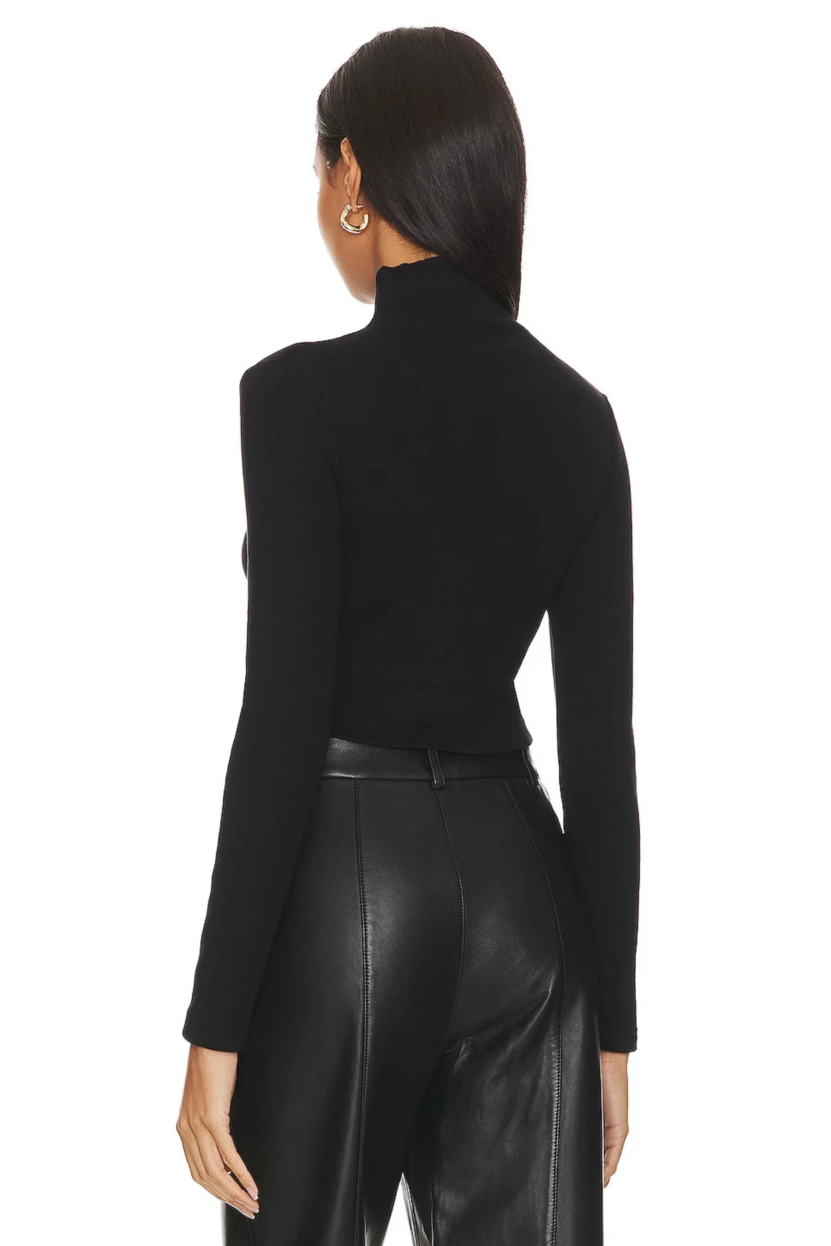 Kadın Balıkçı Yaka Uzun Kol Çift Kat İpek Jarse Crop Top