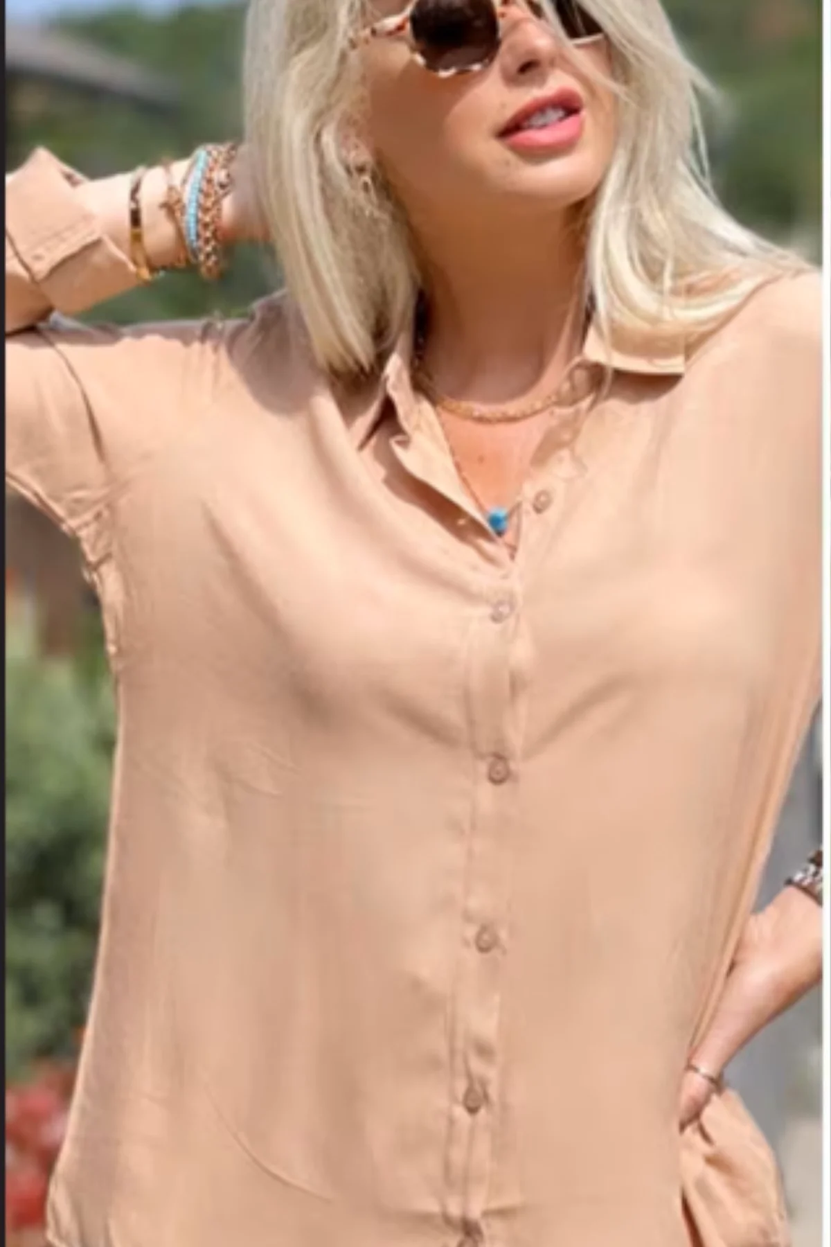 Doğal tonların en ferah haliyle tanışın! Bu bej pamuklu viskon gömlek, yüksek kaliteli dokuma kumaşı sayesinde cildinizde pamuksu bir yumuşaklık bırakır. Bejin sakinleştirici tonu ve viskonun akışkan yapısı, bu efsane basic parçayı gardırobunuzun en şık ve kurtarıcı üyesi haline getiriyor.
