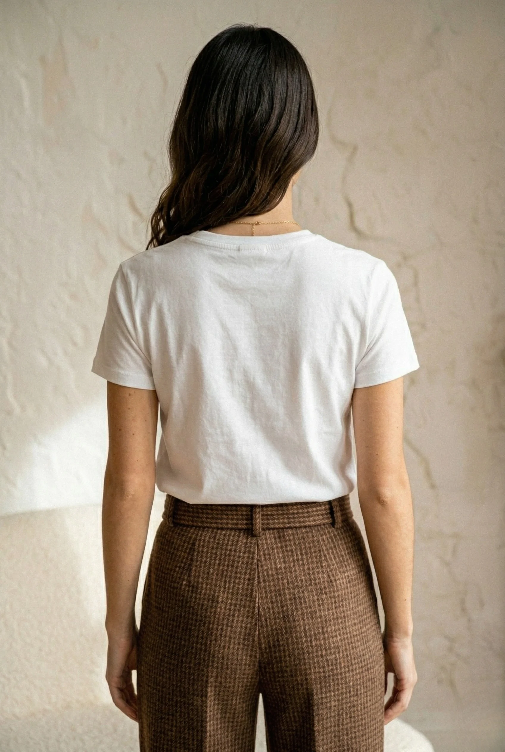 Bu özel tasarım fisto nakışlı beyaz tişörtü, yüksek bel kumaş pantolonlarla ofis stiline uyarlayabilir veya denim şortlarla hafta sonu şıklığına taşıyabilirsiniz. Pencere detayını ön plana çıkarmak için minimal gold kolyelerle görünümünüzü tamamlayın.