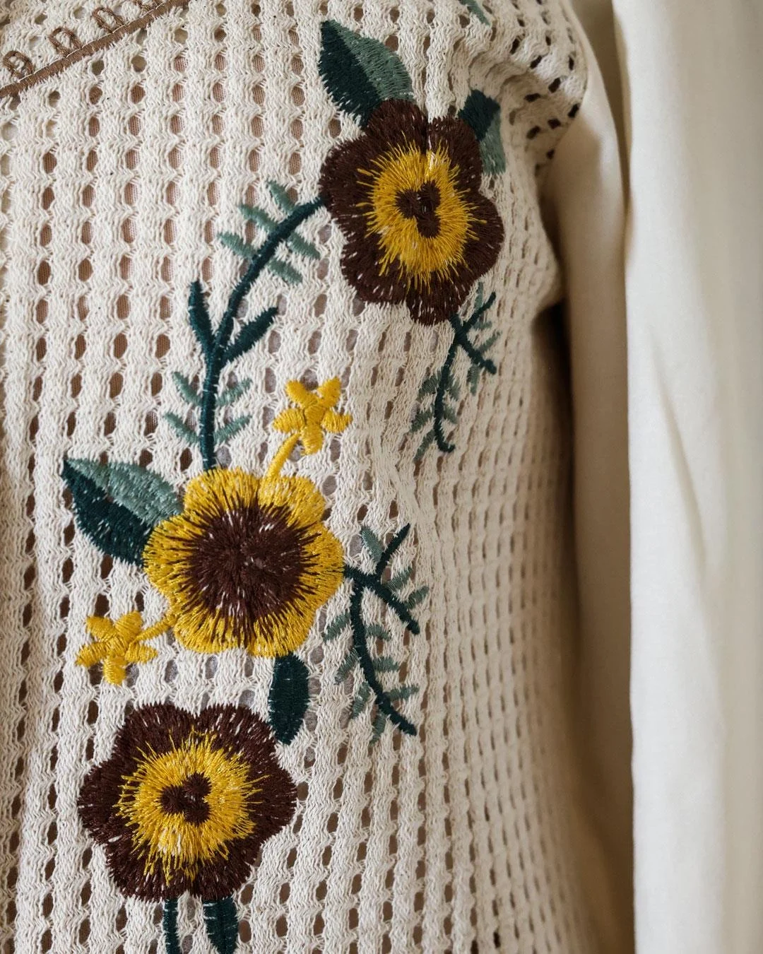 Detaylar: Ayçiçeği Nakışı, Tahta Düğmeler, Kontrast Dikiş