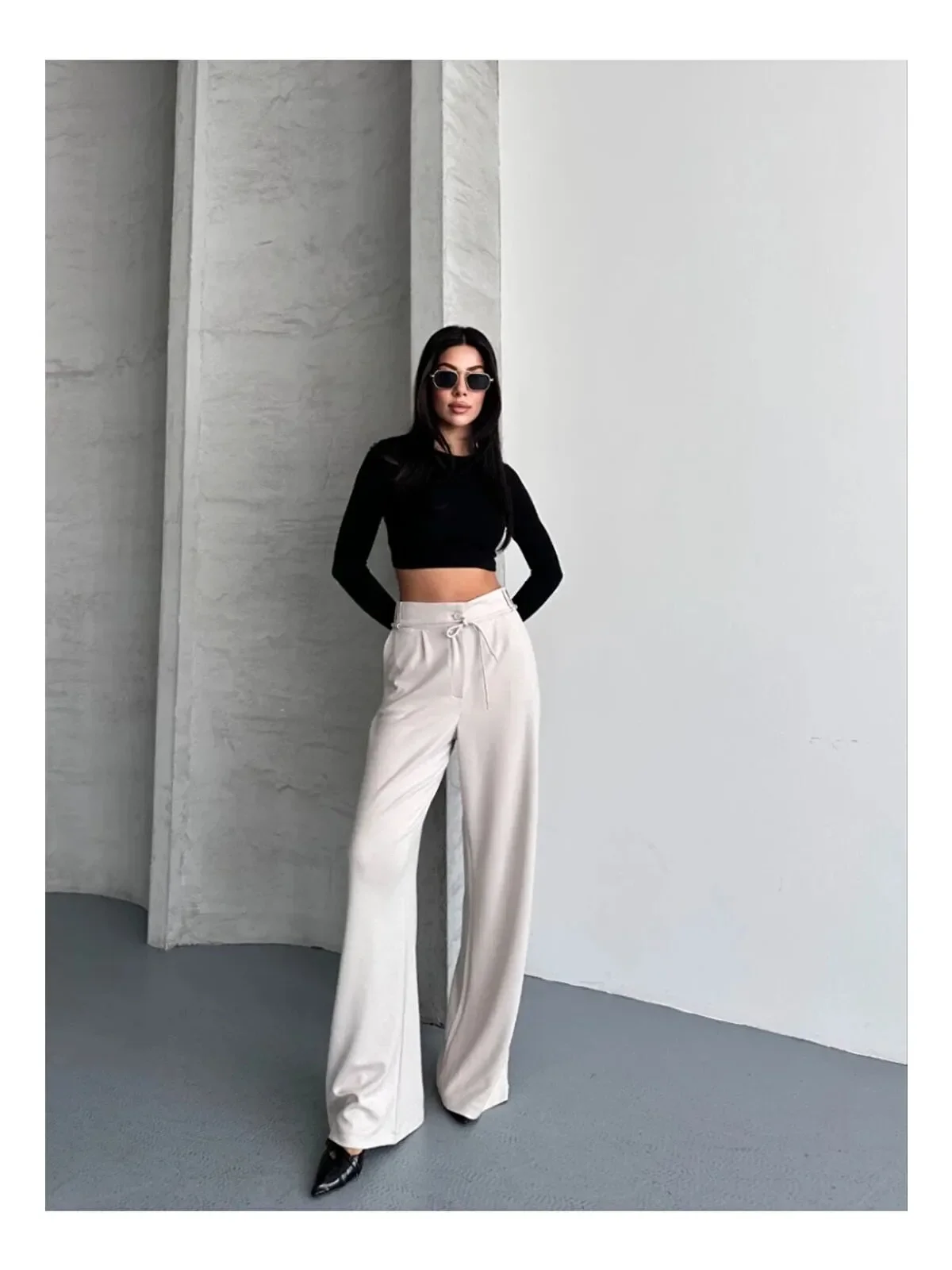 Bu çok yönlü modal pantolonu, görseldeki gibi siyah dar bir crop top ve topuklu ayakkabılarla kombinleyerek şık bir akşam yemeğine gidebilirsiniz. Günlük hayatta ise beyaz sneakerlar ve basic tişörtlerle "çabasız şıklığın" keyfini çıkarabilirsiniz.