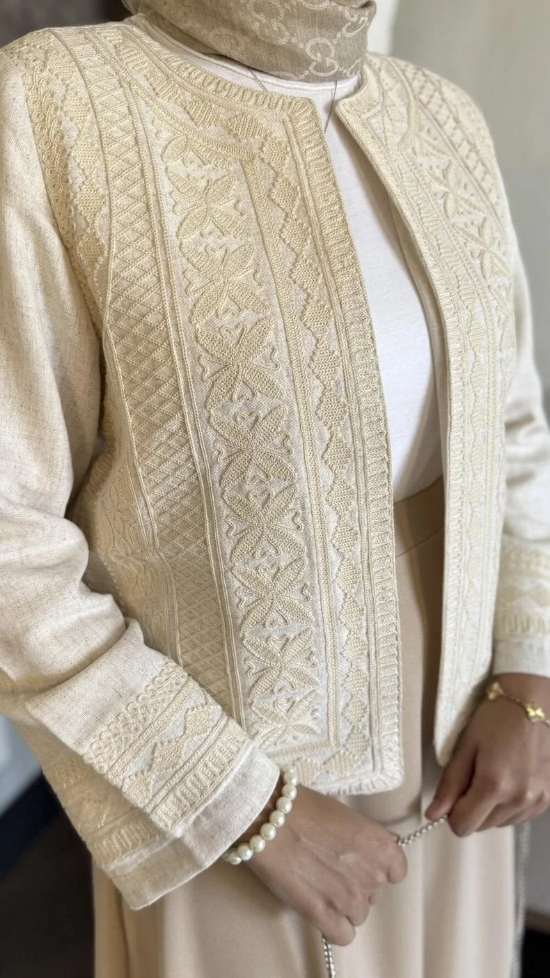 Doğal dokuların asaletini ve el işçiliği hissini taşıyan bu krem rengi astarlı keten ceket, gardırobunuzun en sofistike parçası olmaya aday! Pinterest estetiğine hitap eden bohem şıklığıyla, etnik nakış detayları ve tam astarlı yapısı hem şık hem de konforlu bir kullanım sunuyor.