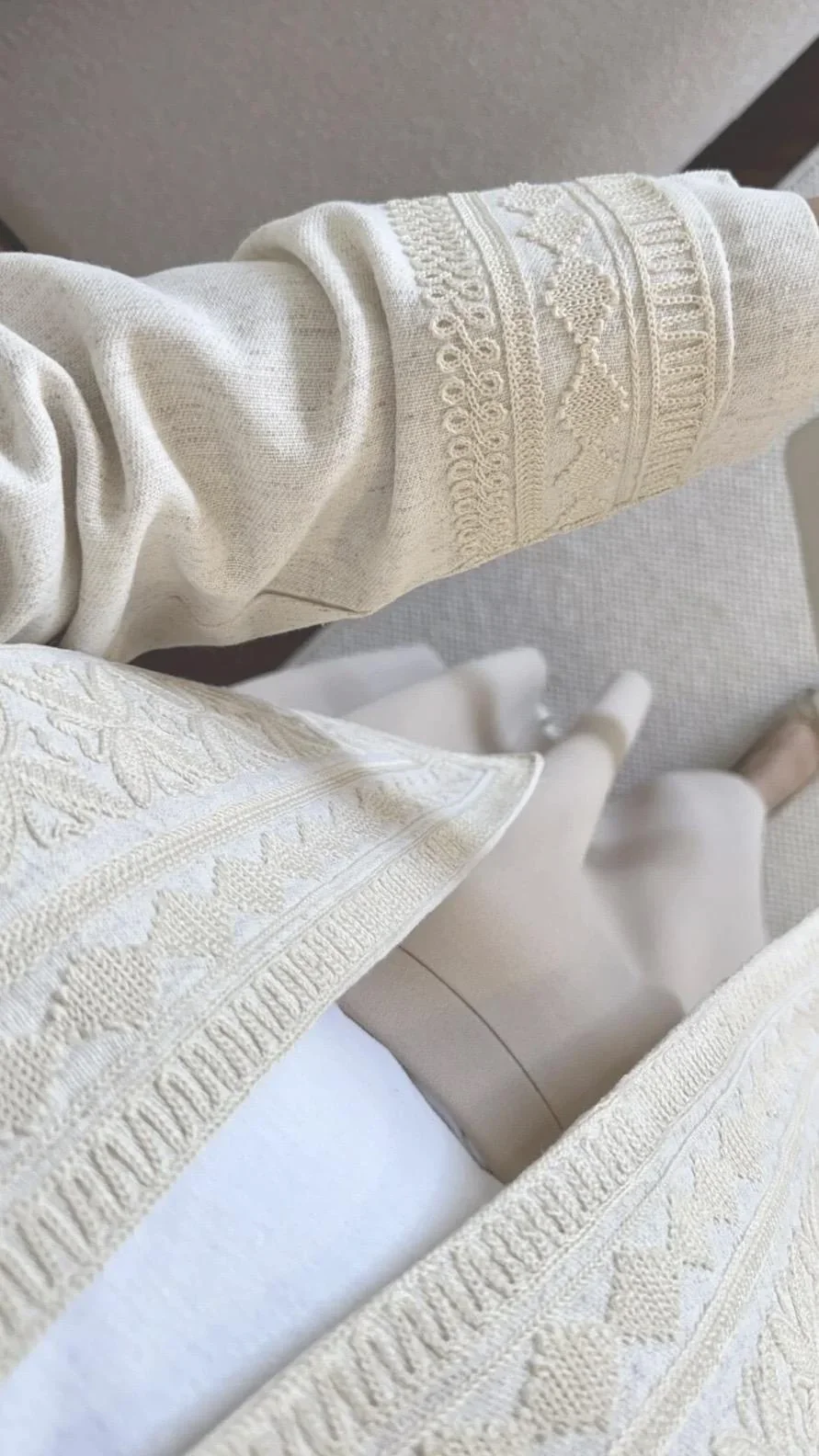 Zamansız Tasarım: Krem renginin asilliği, etnik nakışlarla birleşerek her döneme hitap eden nostaljik ve şık bir hava yaratır.