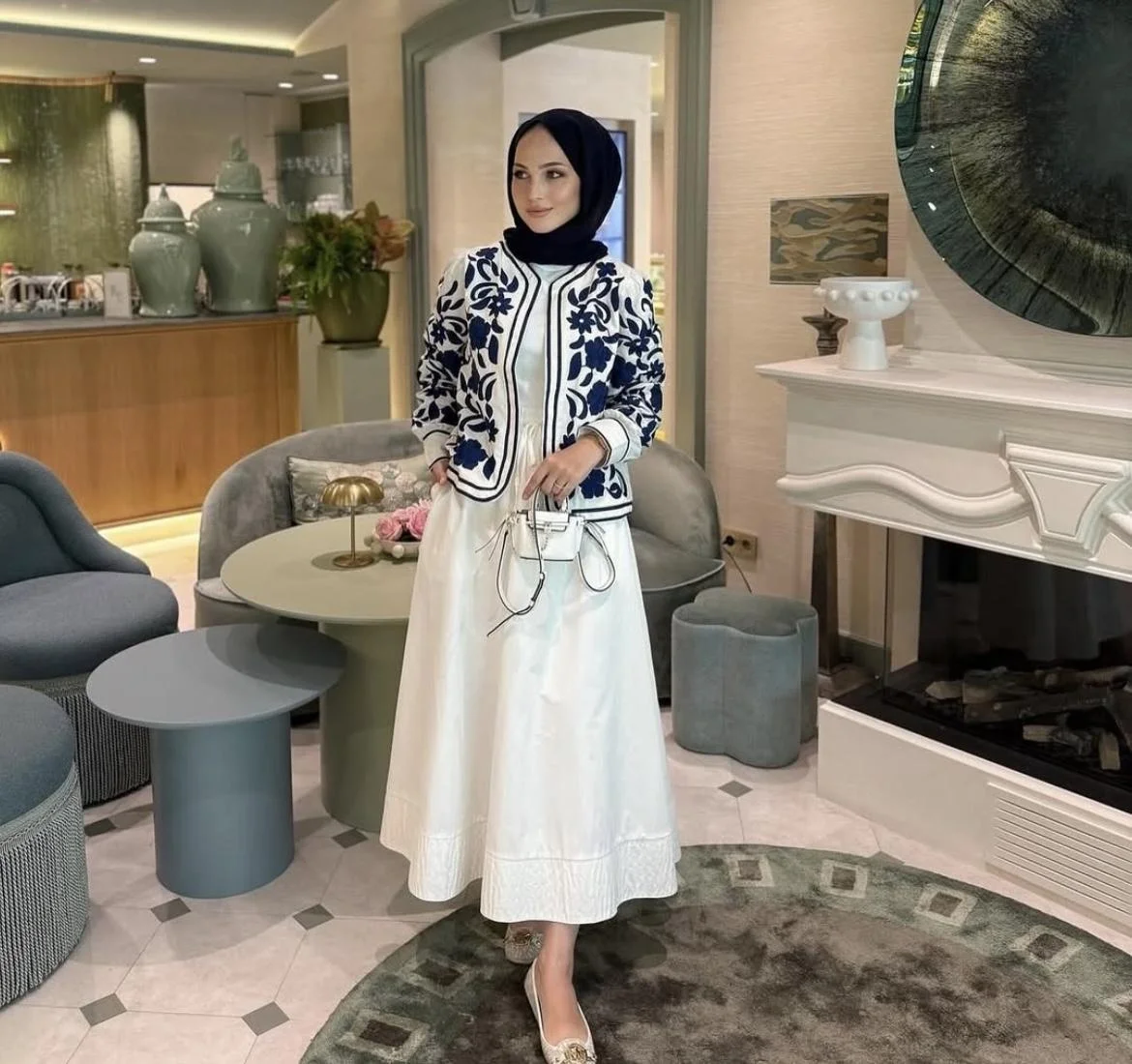 Bu iddialı nakışlı ceketi, görseldeki gibi baştan aşağı beyaz bir kombinle (beyaz jean ve beyaz büstiyer) tamamlayarak lacivertin asaletini ön plana çıkarabilirsiniz. Günlük kullanımda mavi jean şortlar ve sandaletlerle "tatil şıklığı" yaratabilirsiniz.