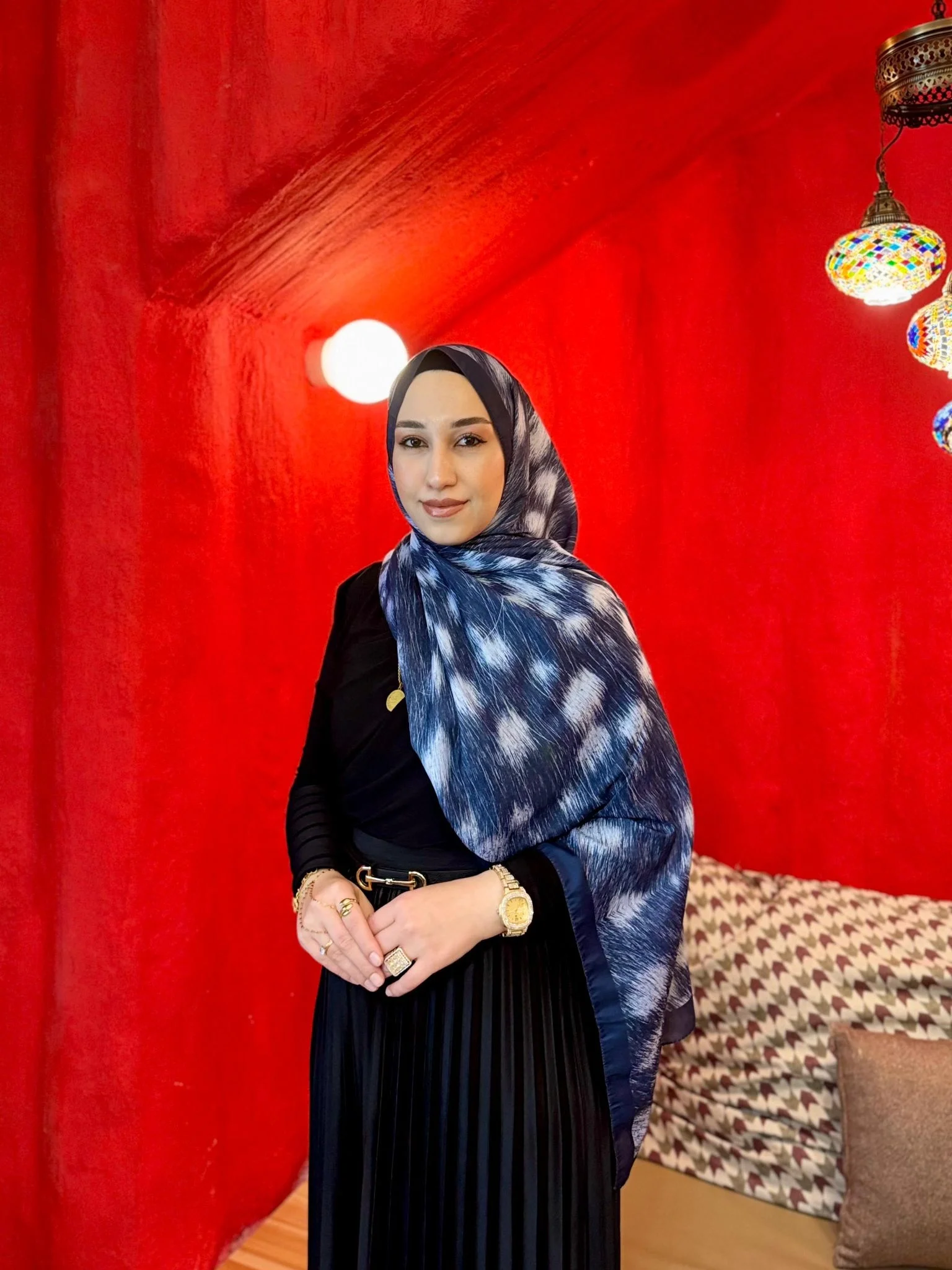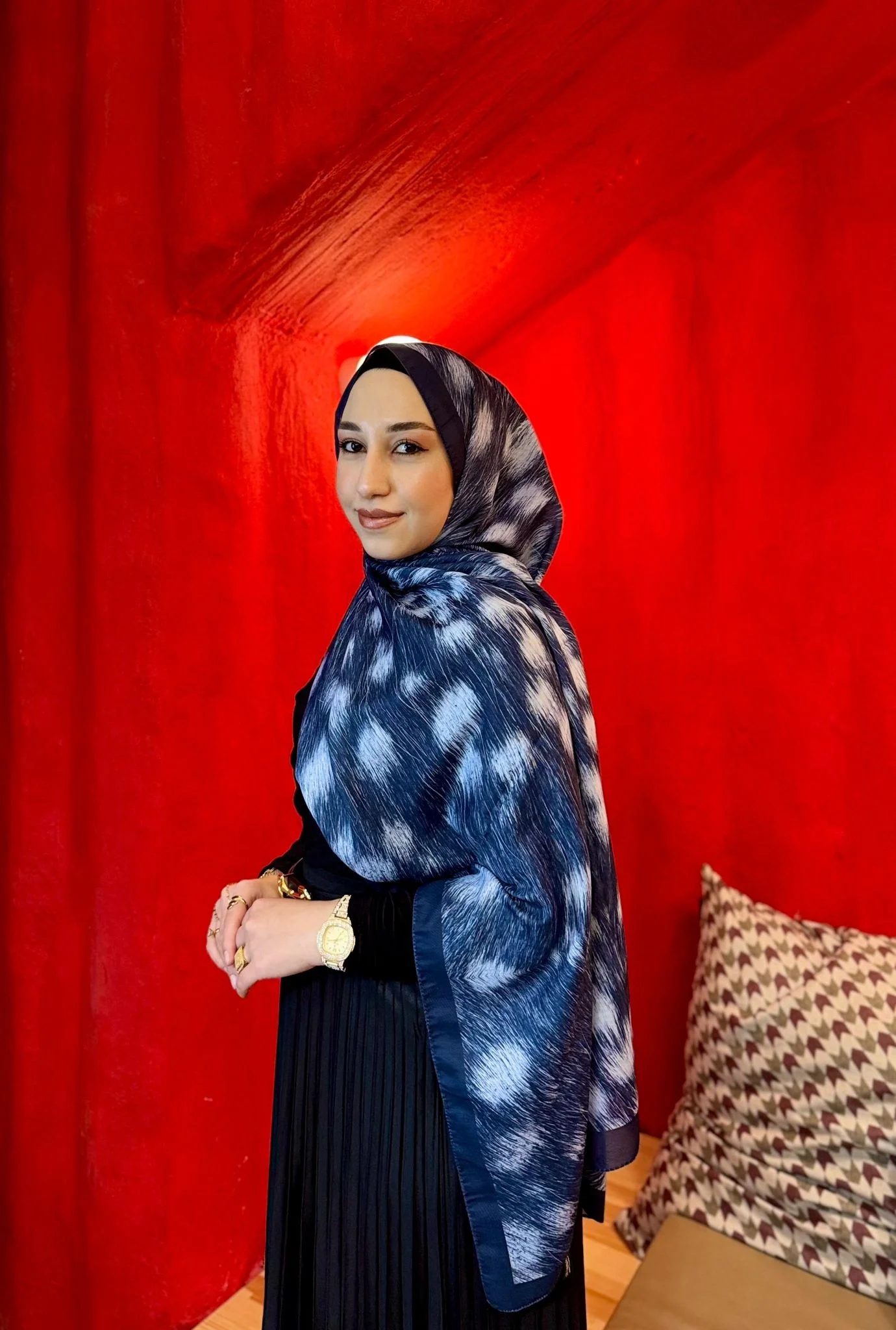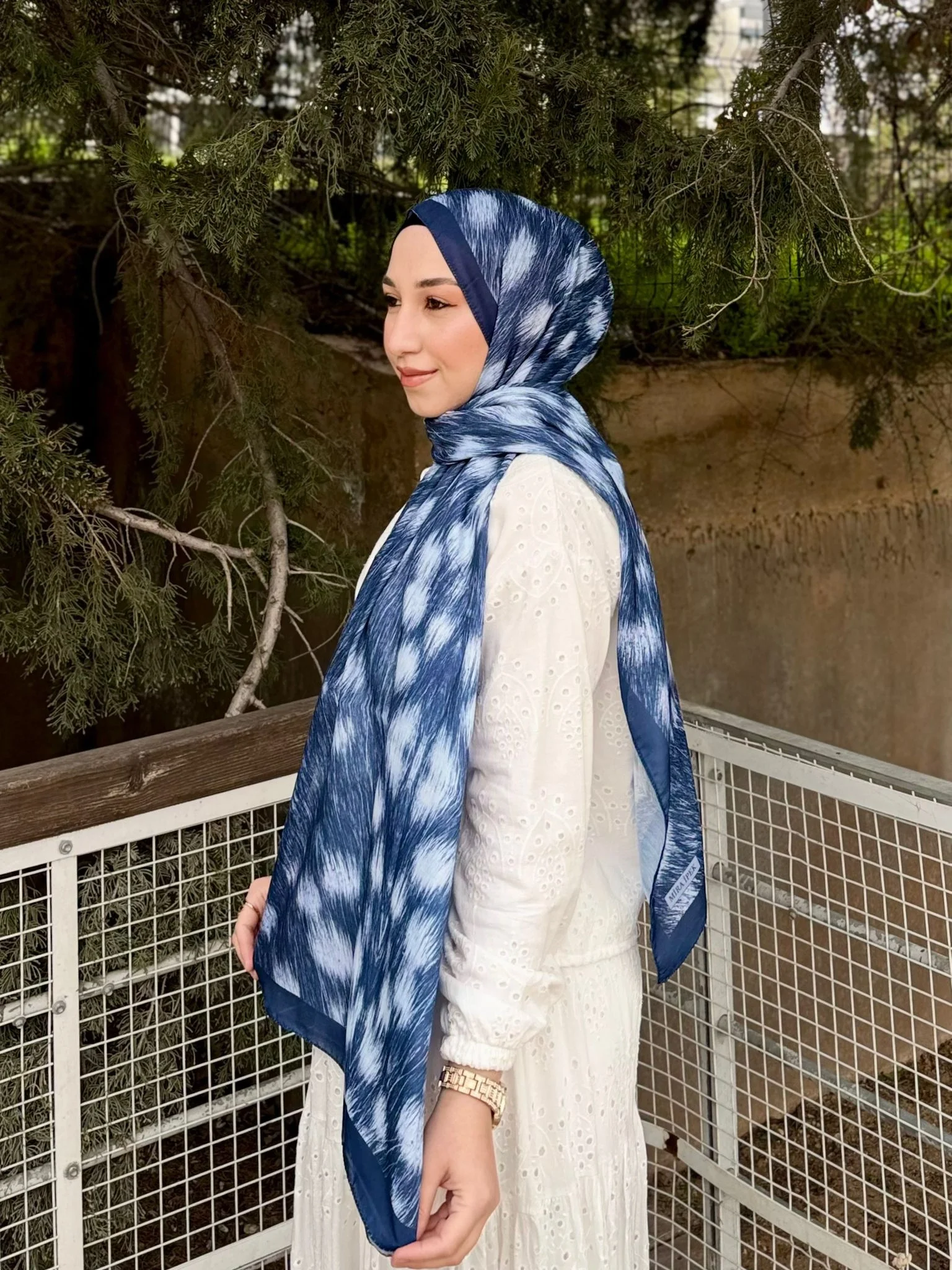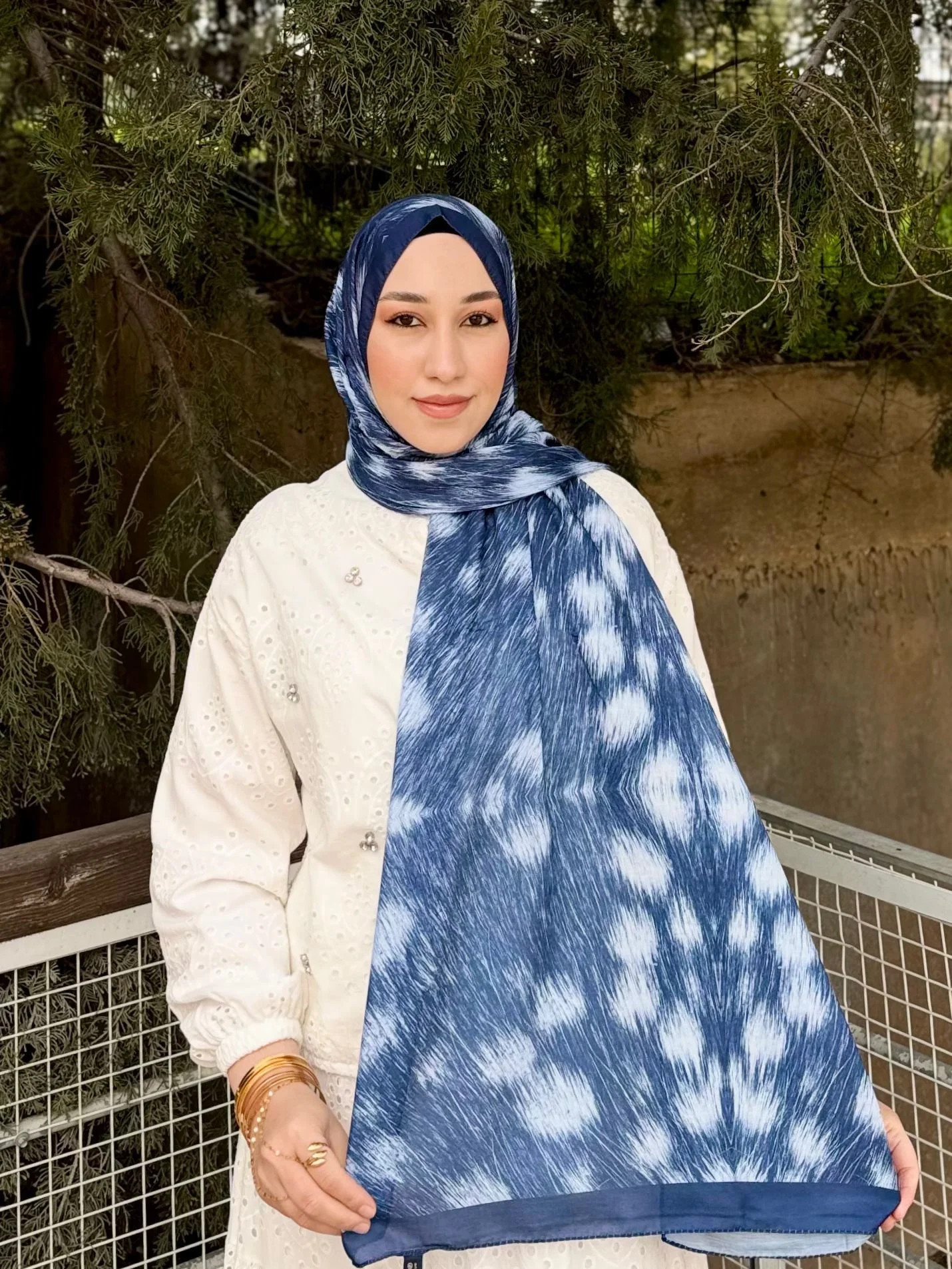 Modern çizgilerin yumuşacık bir dokuyla buluştuğu bu lacivert pamuklu soft şal, gün boyu konforundan ödün vermeyen kadınlar için tasarlandı. Fırça darbesi efektli soyut deseni ve tok duruşu sayesinde hem klasik hem de spor kombinlerinizin vazgeçilmez tamamlayıcısı olacak.