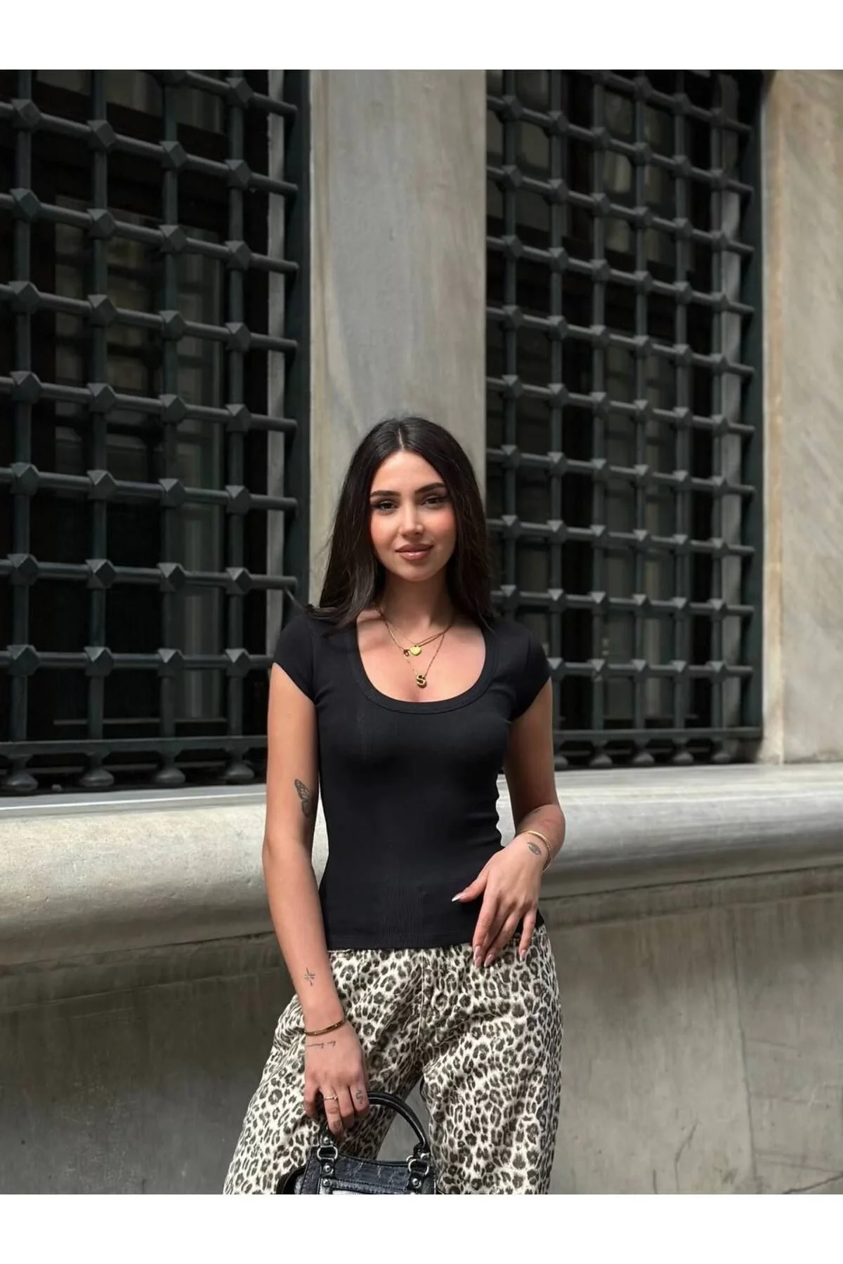 170 cm boyunda ve 53 kg ağırlığındaki mankenimiz, S bedenini giyerek şıklığını sergiliyor.