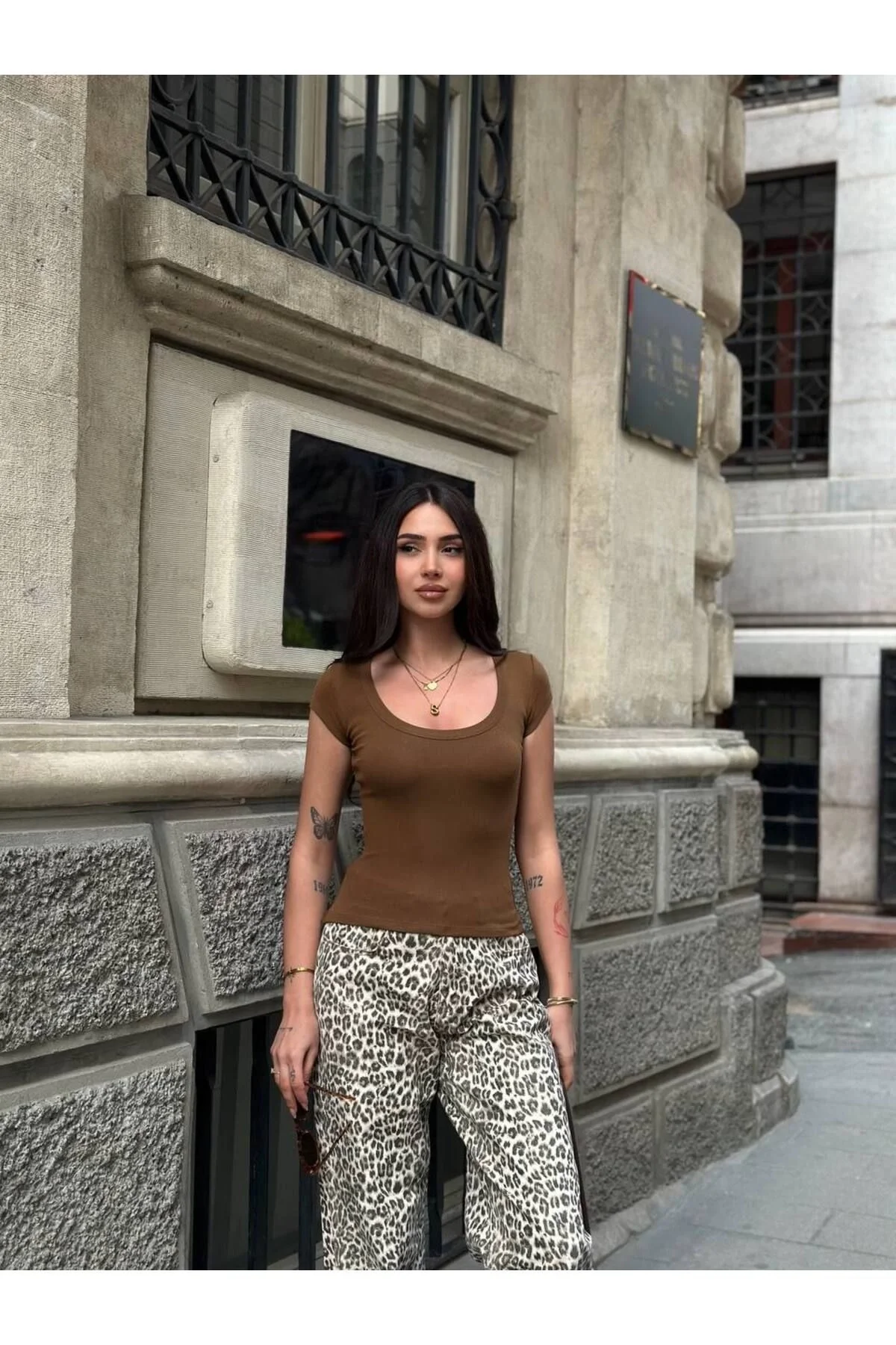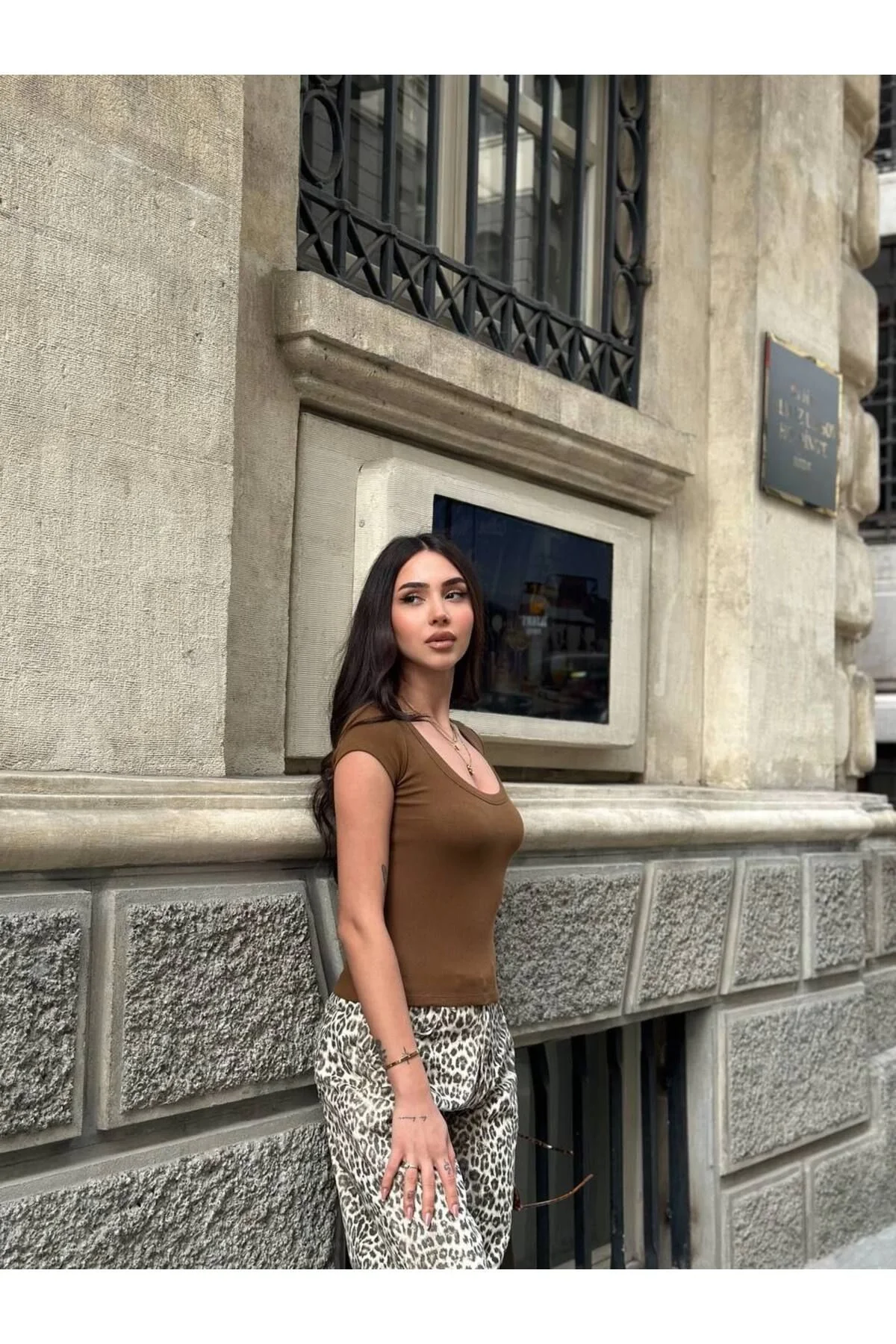 170 cm boyunda ve 53 kg ağırlığındaki mankenimiz, S bedenini giyerek şıklığını sergiliyor.