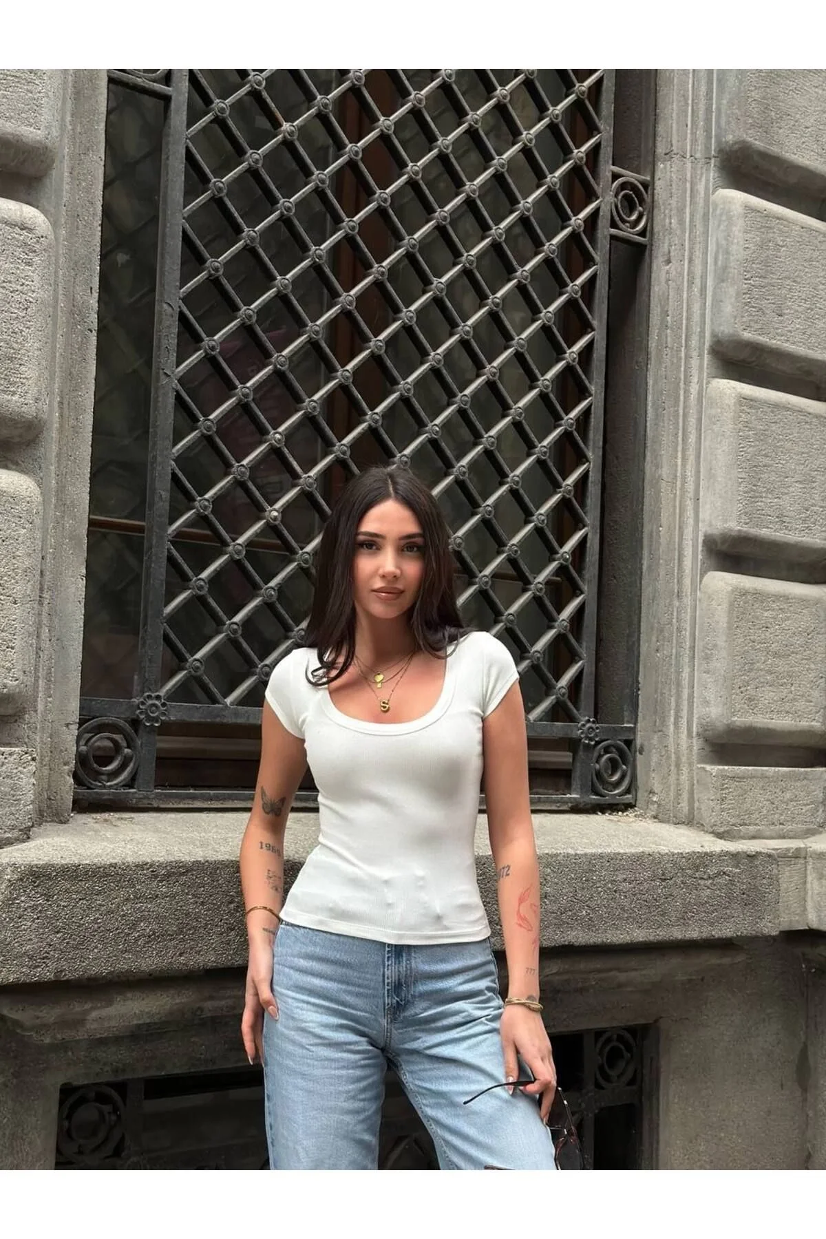 MetuCa'nın yeni sezon Pamuklu Ribana U Yaka T-Shirt, hem şık hem rahat bir seçenek arayanlar için ideal!