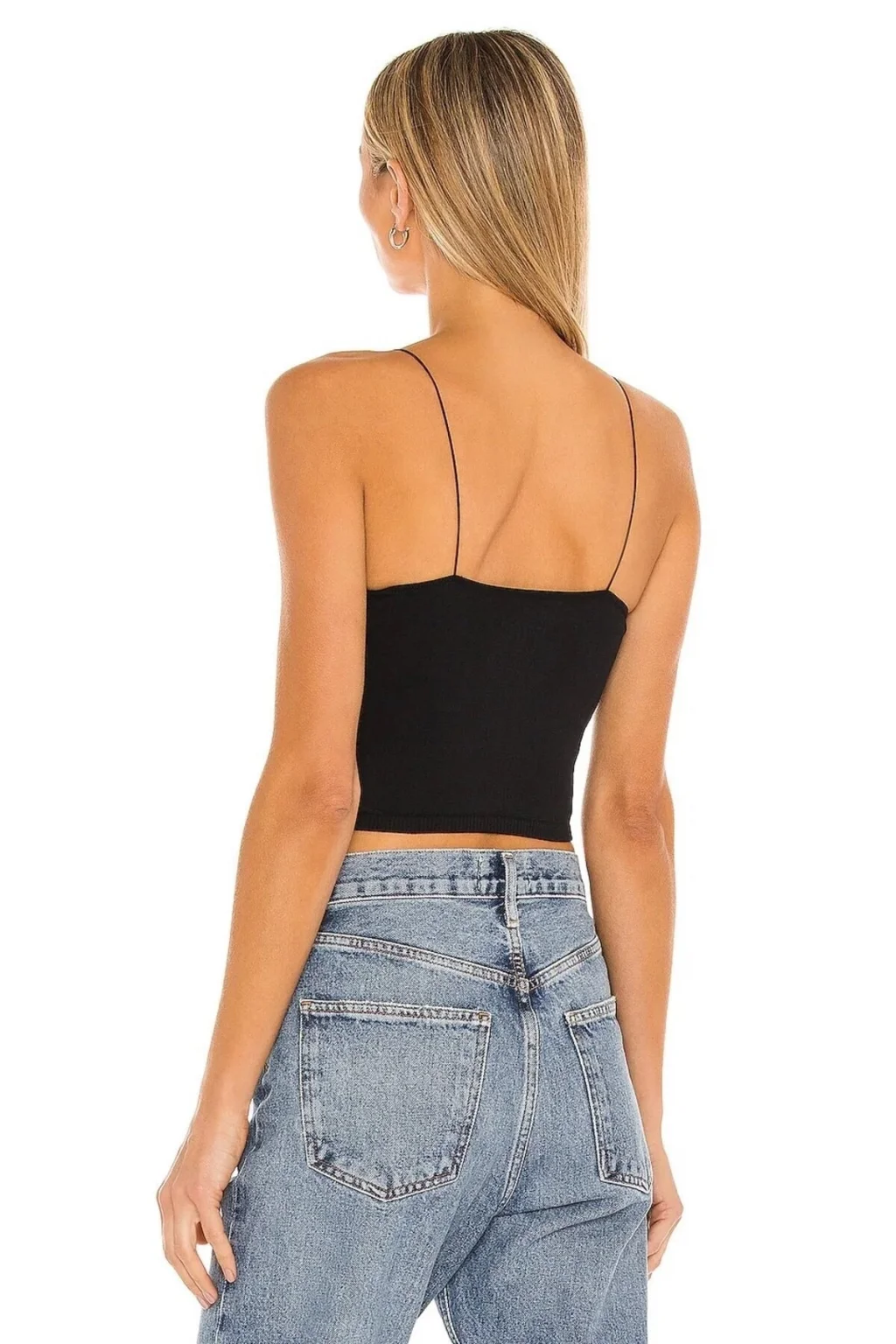 Kadın Sıfır Kol İp Askılı Çift Kat İpek Jarse Crop Top