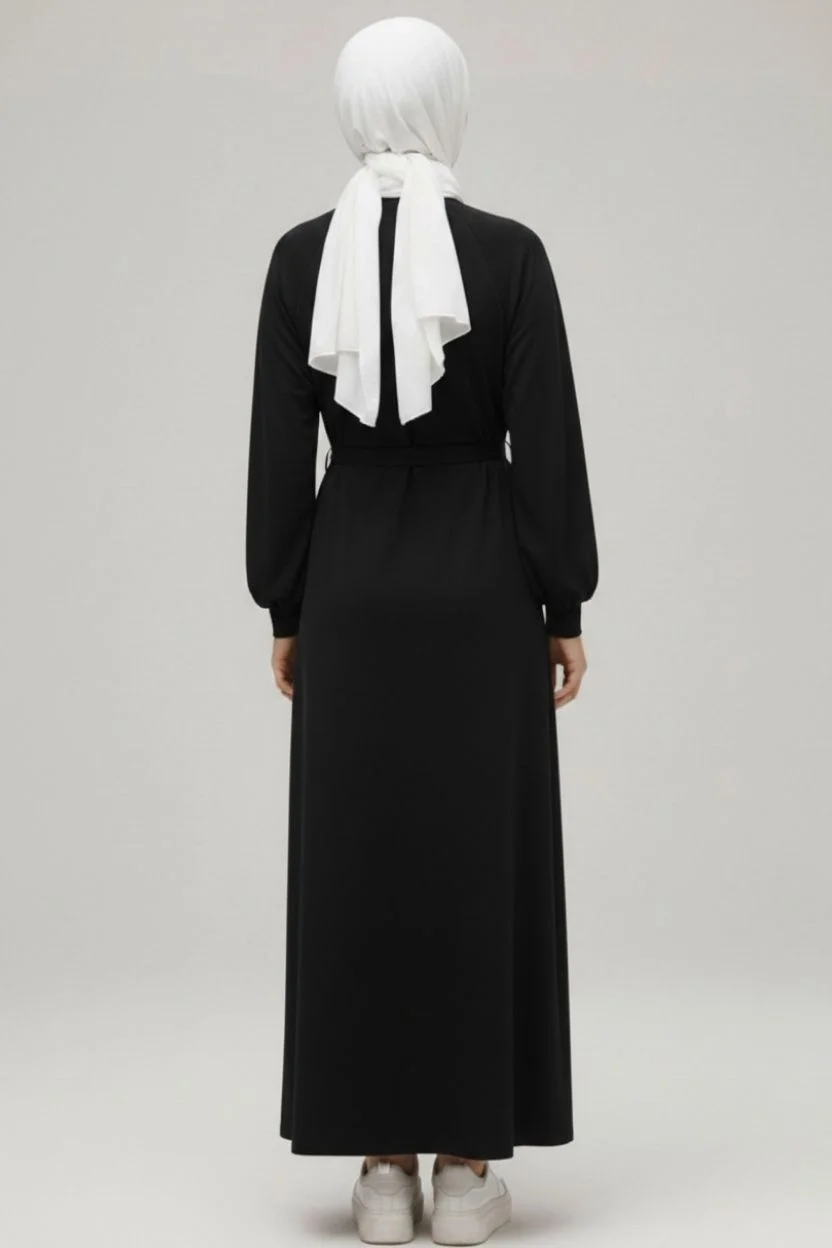 Bu siyah modal elbiseyi, beyaz spor ayakkabılarla (görseldeki gibi) tamamlayarak sportif ve modern bir görünüm elde edebilirsiniz. Daha şık bir stil için ise babet veya topuklu botlarla kombinleyerek özel günlere taşıyın.