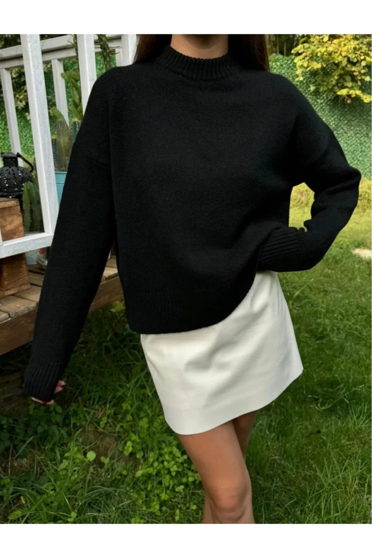 Siyahın en asil tonu, oversize konforuyla birleşti. Bu yumuşak dokulu triko kazak, modern kesimi ve dökümlü duruşuyla stilinize zahmetsiz bir şıklık katar. Serin havalarda içinizi ısıtacak en tatlı tercih.