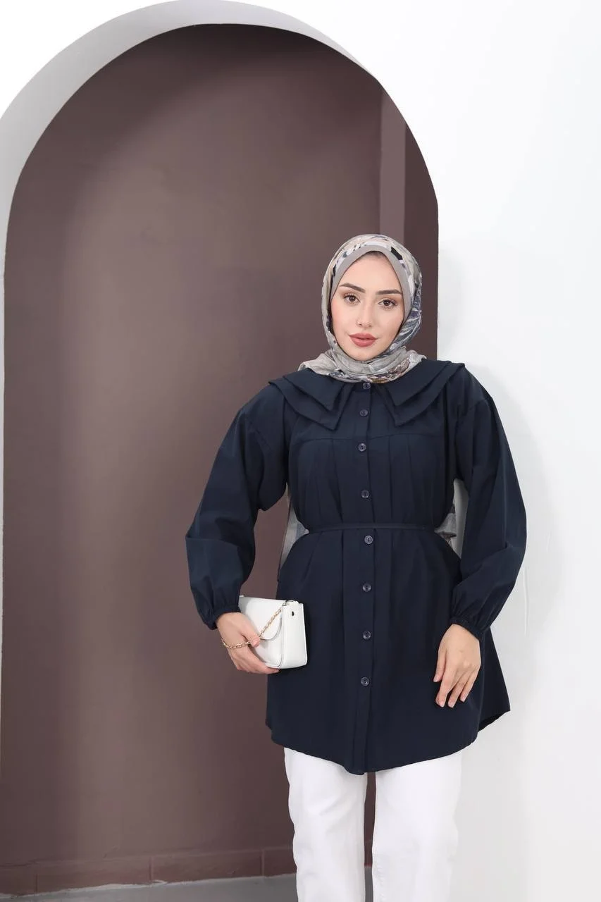 Detaylar: Göğüs Pileli, Belden Kuşaklı, Düğmeli