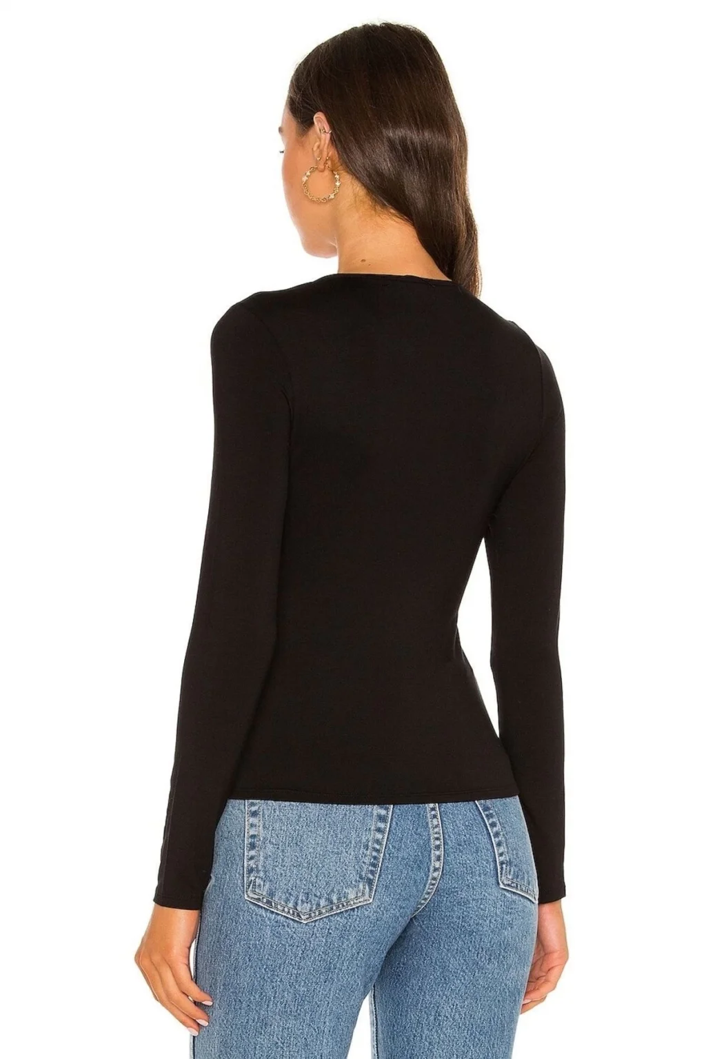 Kadın Siyah Ipek Jarse Uzun Kollu Bluz