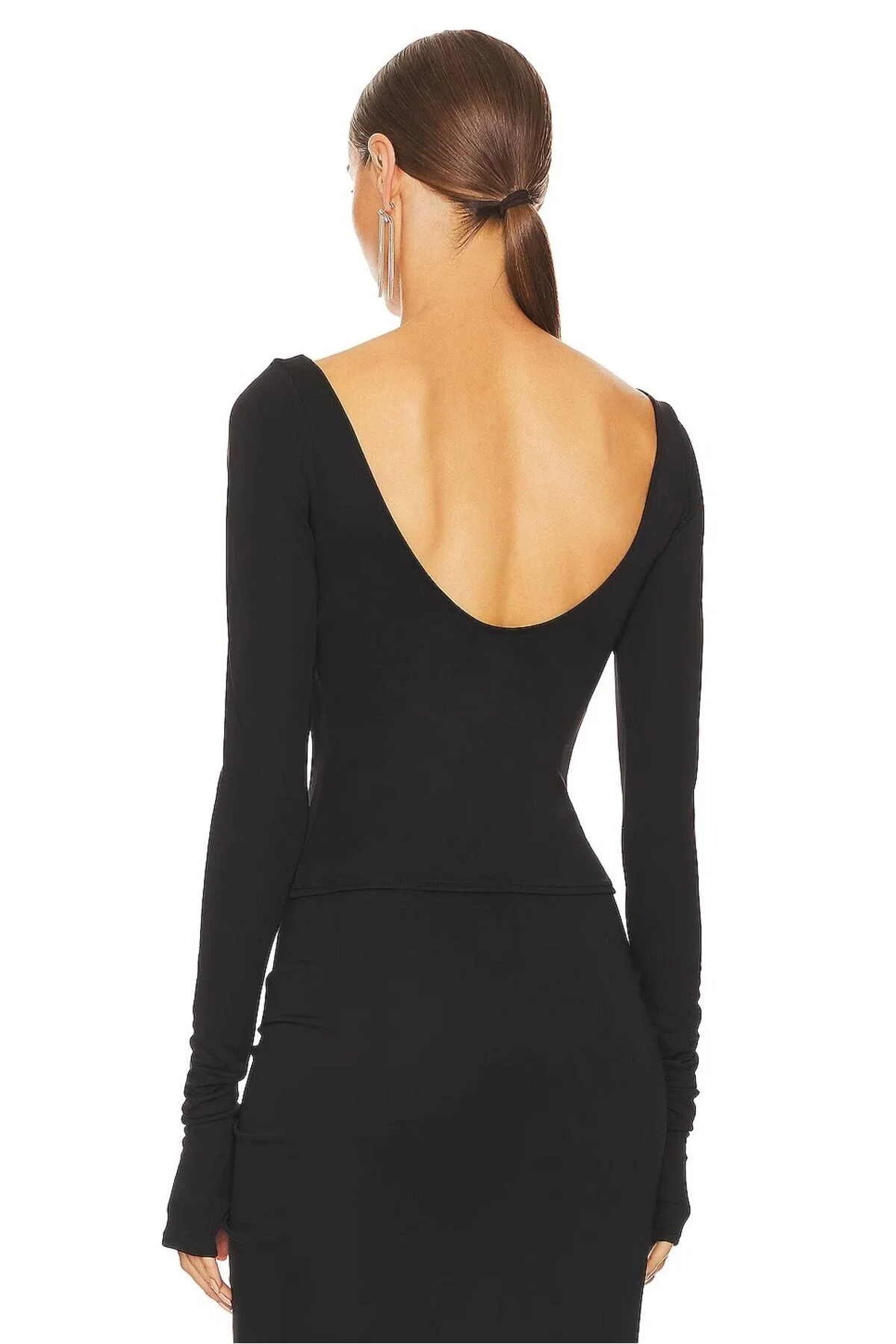 Bu **sırt dekolteli siyah bluz**'u, yüksek bel deri pantolonlar veya kargo pantolonlarla kombinleyerek iddialı bir sokak stili yaratın. Saçlarınızı toplayarak sırt detayını ön plana çıkarabilir, parmak geçirme detayını vurgulamak için yüzük ve bilekliklerle stilinizi tamamlayabilirsiniz.