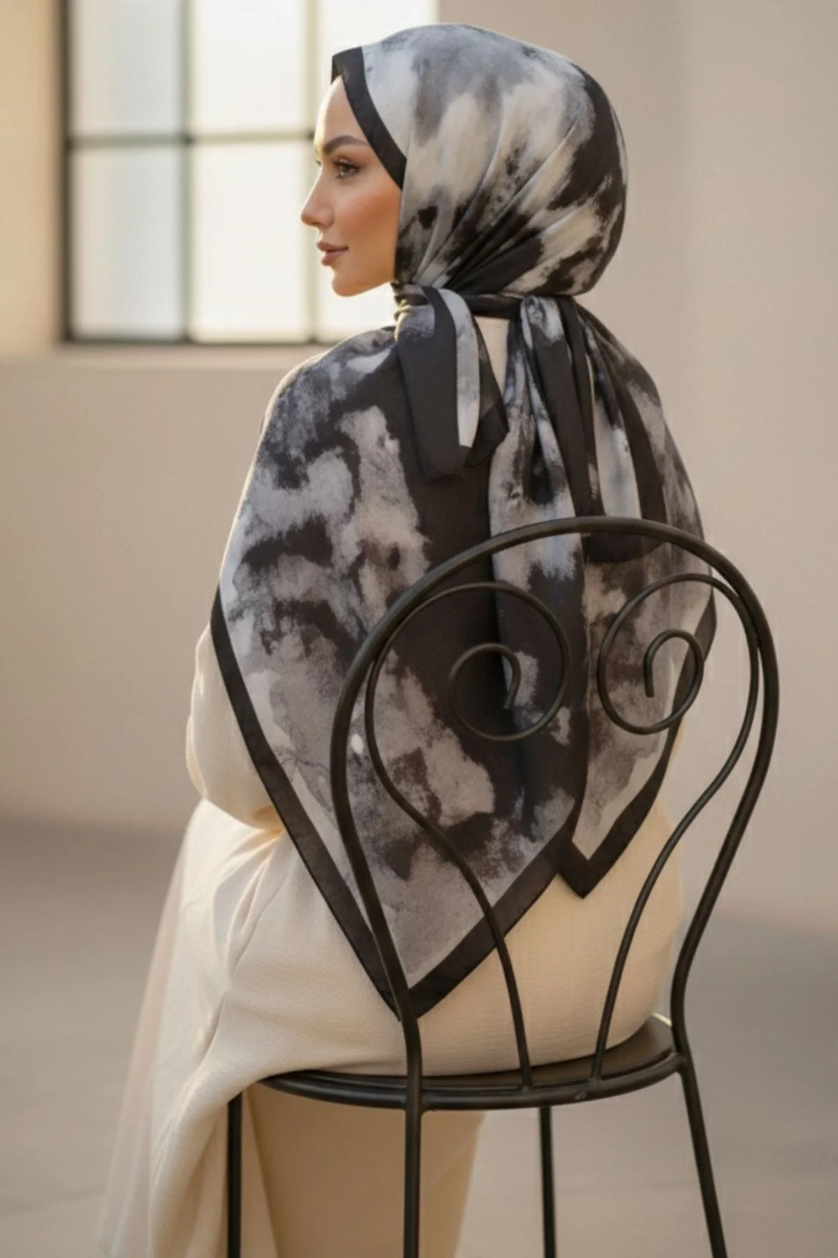 Bu ebruli desenli şal, özellikle bej, krem, beyaz ve kahverengi gibi nötr tonlardaki kıyafetlerinizle mükemmel bir uyum yakalar. Sade bir elbiseyi veya tuniği anında hareketlendirerek şıklığınızı bir üst seviyeye taşır.