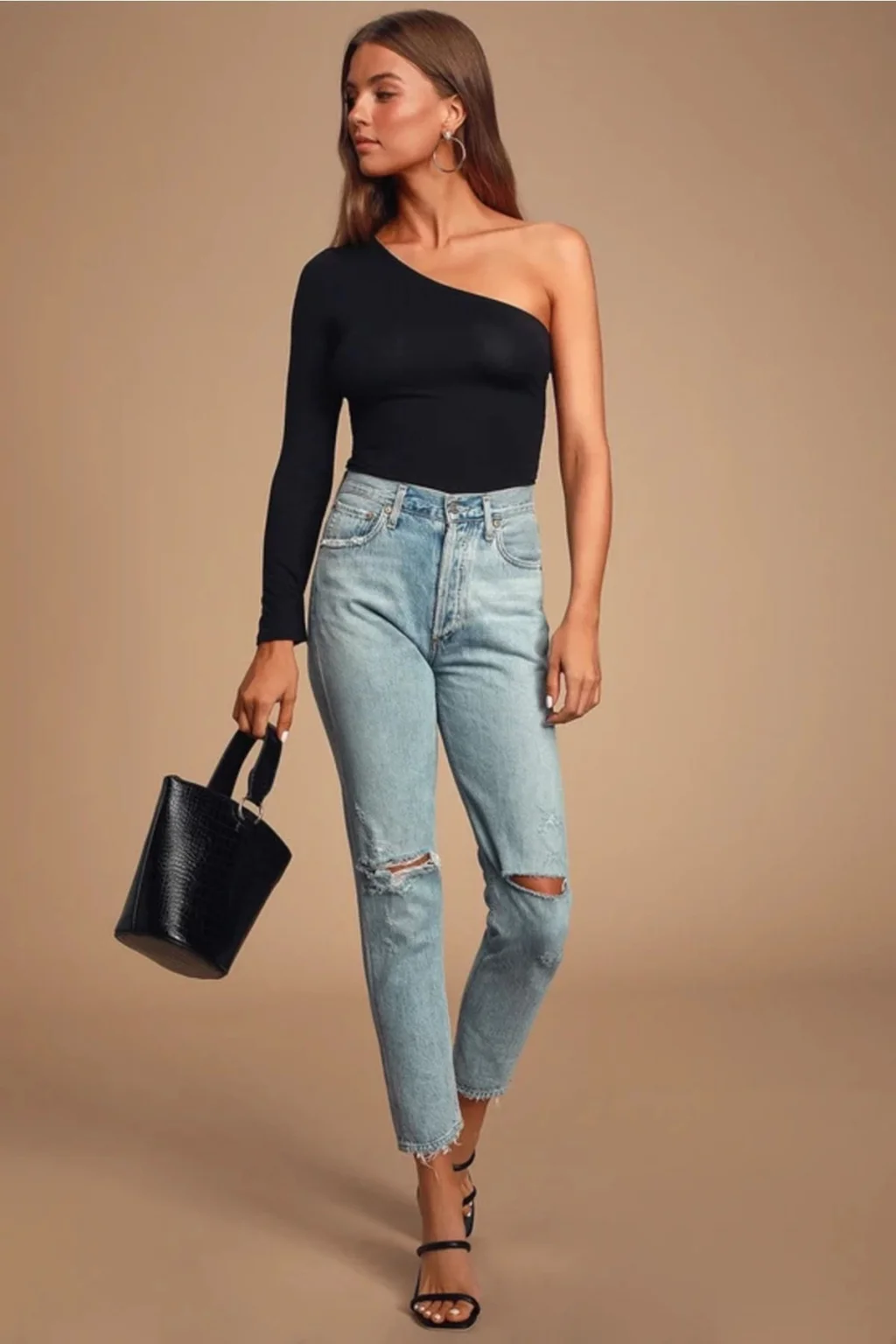 Kadın Siyah Tek Omuz Ipek Jarse Body