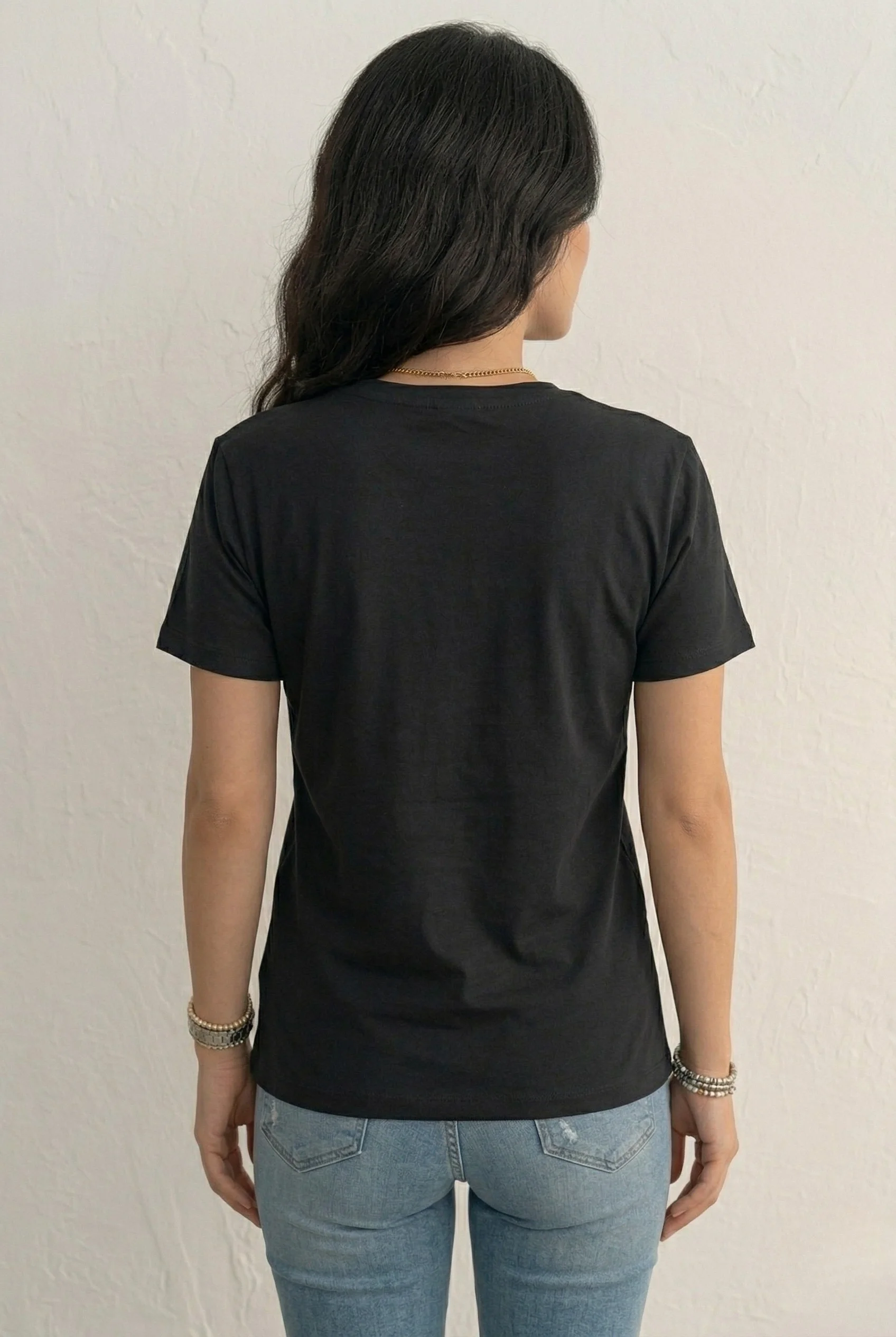 Bu özel tasarım çiçek işlemeli siyah tişörtü, açık mavi bir jean pantolonla günlük olarak veya krem rengi kumaş pantolonlarla ofis şıklığı için kullanabilirsiniz. Gold takılarla desendeki boncuk detaylarını vurgulayarak görünümünüzü tamamlayın.