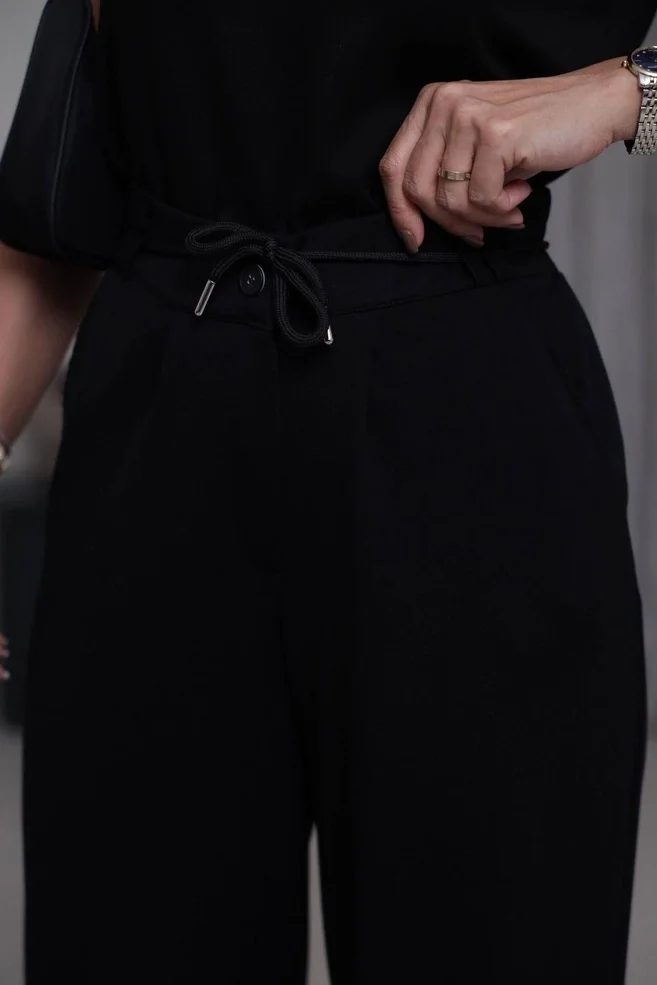 Bu kurtarıcı siyah modal pantolonu, beyaz bir gömlek veya tişörtle tamamlayarak klasik bir kontrast yaratabilirsiniz. Akşam davetleri için siyah bir büstiyer ve topuklu sandaletlerle "baştan aşağı siyah" (all black) şıklığını yakalayabilir, gümüş takılarla tamamlayabilirsiniz.