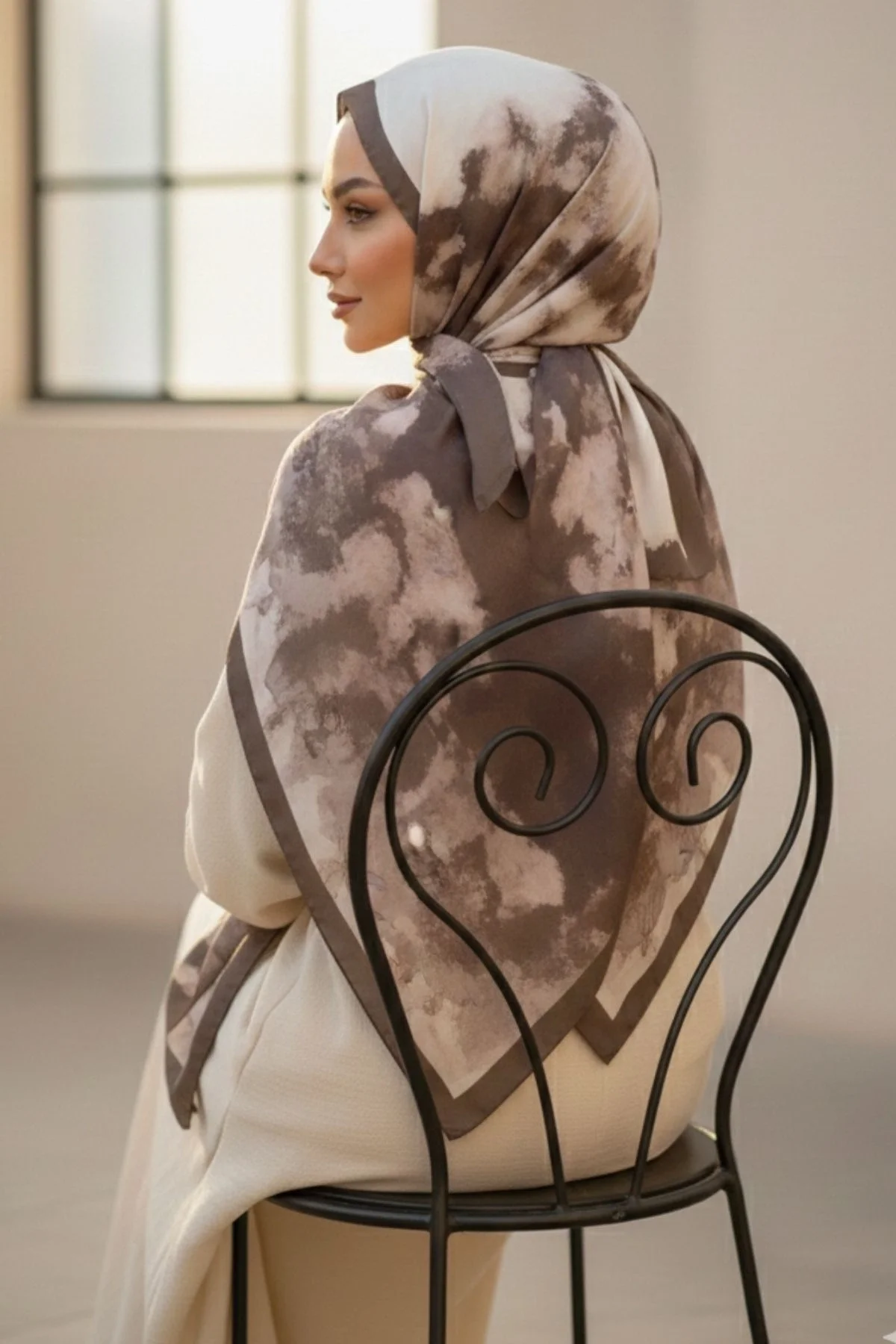 Bu ebruli desenli şal, özellikle bej, krem, beyaz ve kahverengi gibi nötr tonlardaki kıyafetlerinizle mükemmel bir uyum yakalar. Sade bir elbiseyi veya tuniği anında hareketlendirerek şıklığınızı bir üst seviyeye taşır.