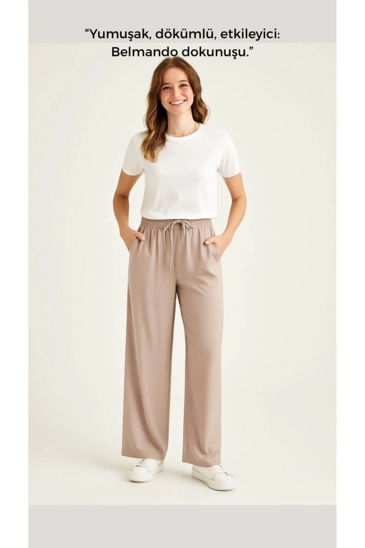 Lastikli beli ve bağcık detayı vücuda uyum sağlar.