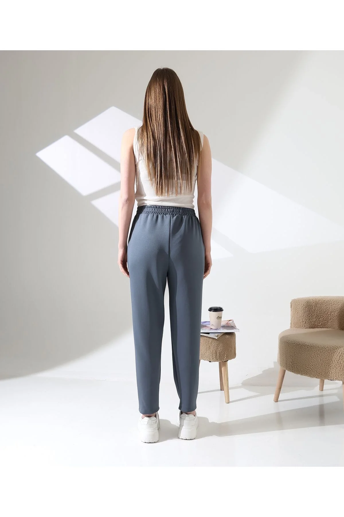 Kadın Yüksek Bel Beli Lastikli Önü Dikişli Scuba Kumaş Jogger Pantolon - Mavi Gri