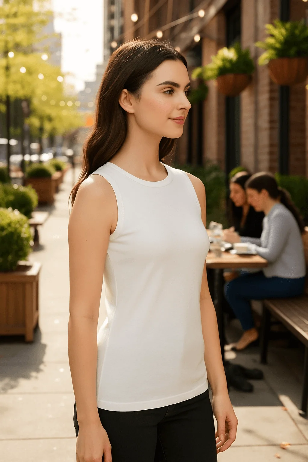 Her gardırobun temel ihtiyacı olan bu beyaz bisiklet yaka atlet, sadeliğin en şık halini sunuyor. Sıfır kol kesimi ve likralı kumaşı sayesinde vücudunuza mükemmel uyum sağlar. Günlük bir görünüm için jean şortlar veya eteklerle, ofis şıklığı için ise ceketlerin içinde rahatlıkla kullanabilirsiniz. Bu basic atlet, tüm kombinlerinizin tamamlayıcısı olacak.