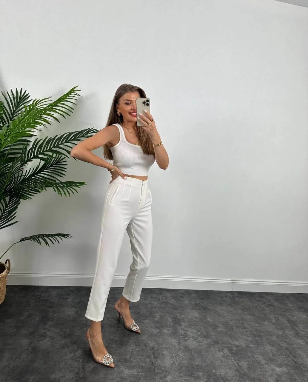 - Yüksek bel tasarımı ile modern ve şık bir görünüm sunar.; - Önü pens detayları sayesinde rahat hareket etme özgürlüğü sağlar.; - Kapama şekli olarak yarım pat düğme kullanılmış, pratik kullanım imkanı tanır.; - Ofis ortamları için ideal olan bu pantolon, tüm sezonlarda tercih edilebilir.; - Kemer veya kuşak gerektirmeyen yapısıyla kolay kombinlenebilirliği artırır.; - İki adet cep bulunur; günlük eşyalarınız için pratik saklama alanları sunar.; - Orta kalınlıkta keten kumaşı, mevsim geçişlerinde konforlu bir deneyim vaat eder.; - Sürdürülebilirlik bilinciyle üretilmiş olup çevre dostu bir seçimdir.; - Tek parça halinde gelen paketiyle ekstra ambalaj ihtiyacını ortadan kaldırır.; - Astarsız yapısıyla hafif ve serin tutan bir yapıya sahiptir.; - Kadın ve kız kullanıcılar için uygun tasarıma sahiptir.; - Yetişkinlerin rahatlıkla tercih edebileceği normal boy kesimiyle her vücut tipine uyum sağlar.; - Keten materyali sayesinde dayanıklılık ve nefes alabilirlik özellikleri ön plana çıkar.; - Kapüşonlu tasarım detaylarıyla farklılık yaratırken stilinizi tamamlar.; - Desenli yapısıyla göz alıcı bir görünüm kazandırarak gardrobunuzda renk katmayı başarır.