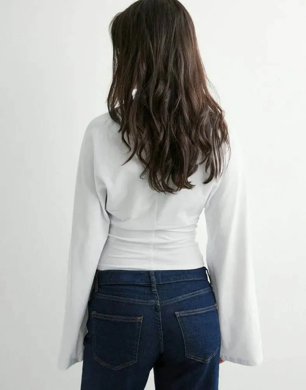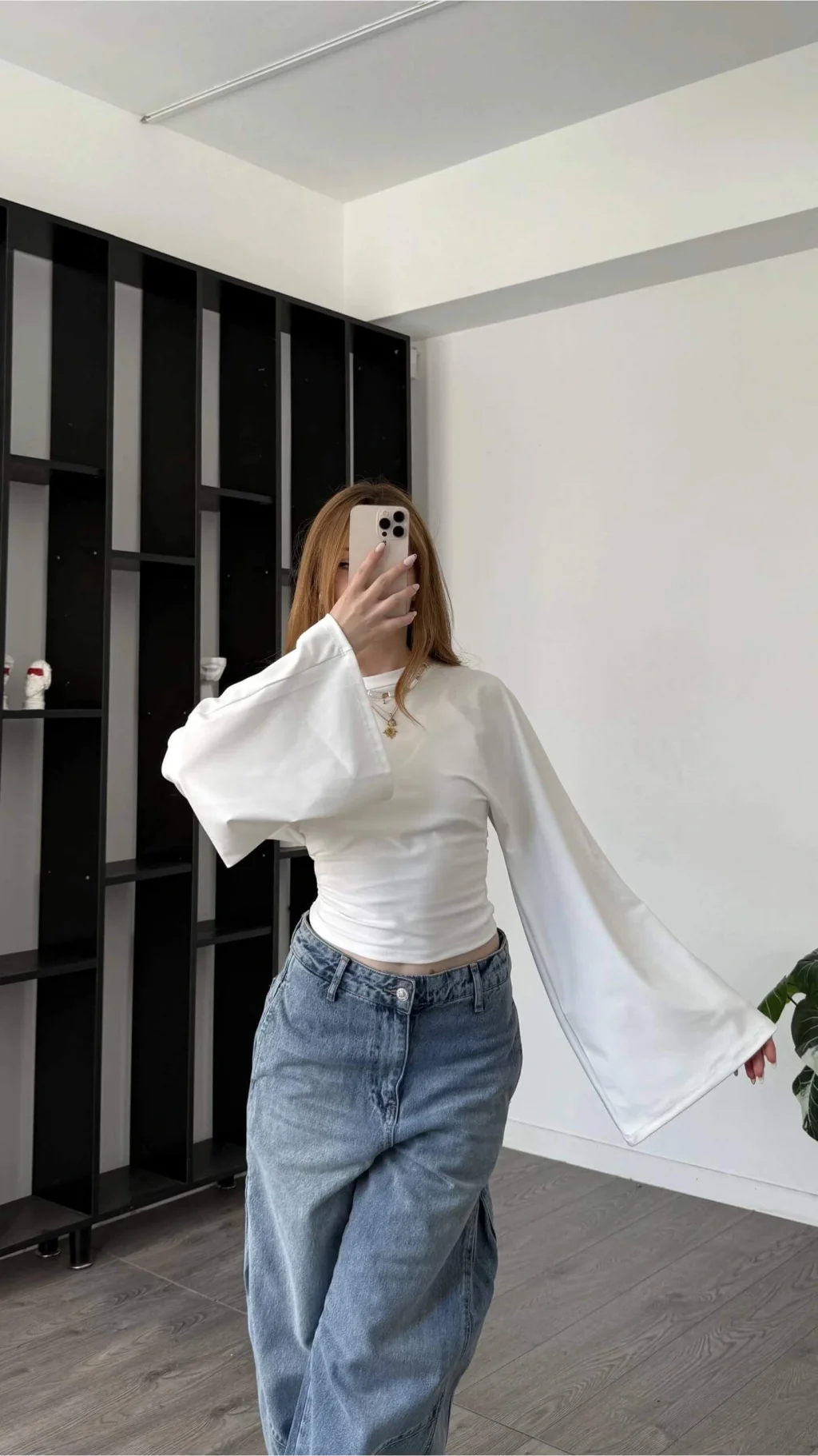 Sade, şık ve iddialı... Geniş Kollu Dalgıç Kumaş Crop Bluz, minimalist gövde tasarımını dramatik kol detaylarıyla birleştirerek tüm dikkatleri üzerinize çekecek modern bir parça sunuyor.