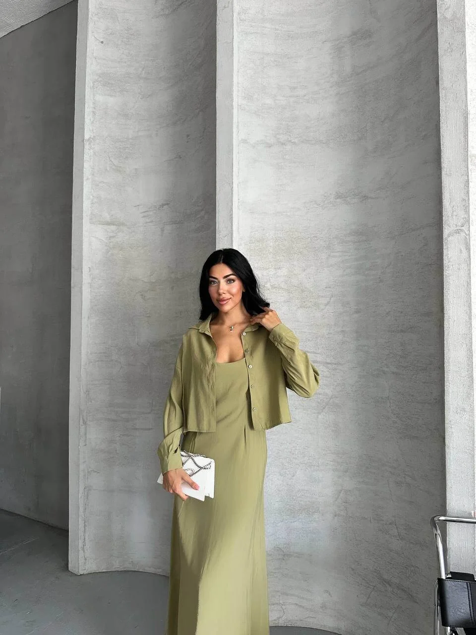 Model: İkili Takım (Crop Gömlek + Askılı Elbise)