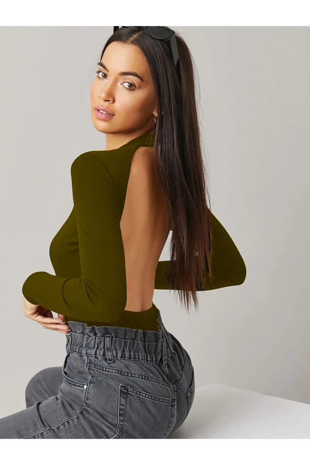 Önden masum, arkadan cüretkar... Sırt Dekolteli Uzun Kollu Bodysuit, gizemli ve çekici bir stil yaratarak gecenin en unutulmaz ismi olmanız için tasarlandı.
