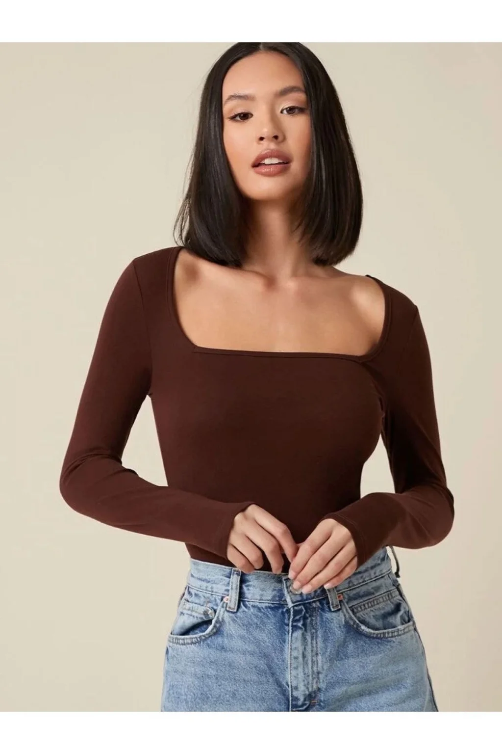 Minimalist şıklığın en zarif hali... Kare Yaka Uzun Kollu Bluz, modern kesimi ve lüks dokusuyla her kombininizin temelini oluşturmak için tasarlandı.