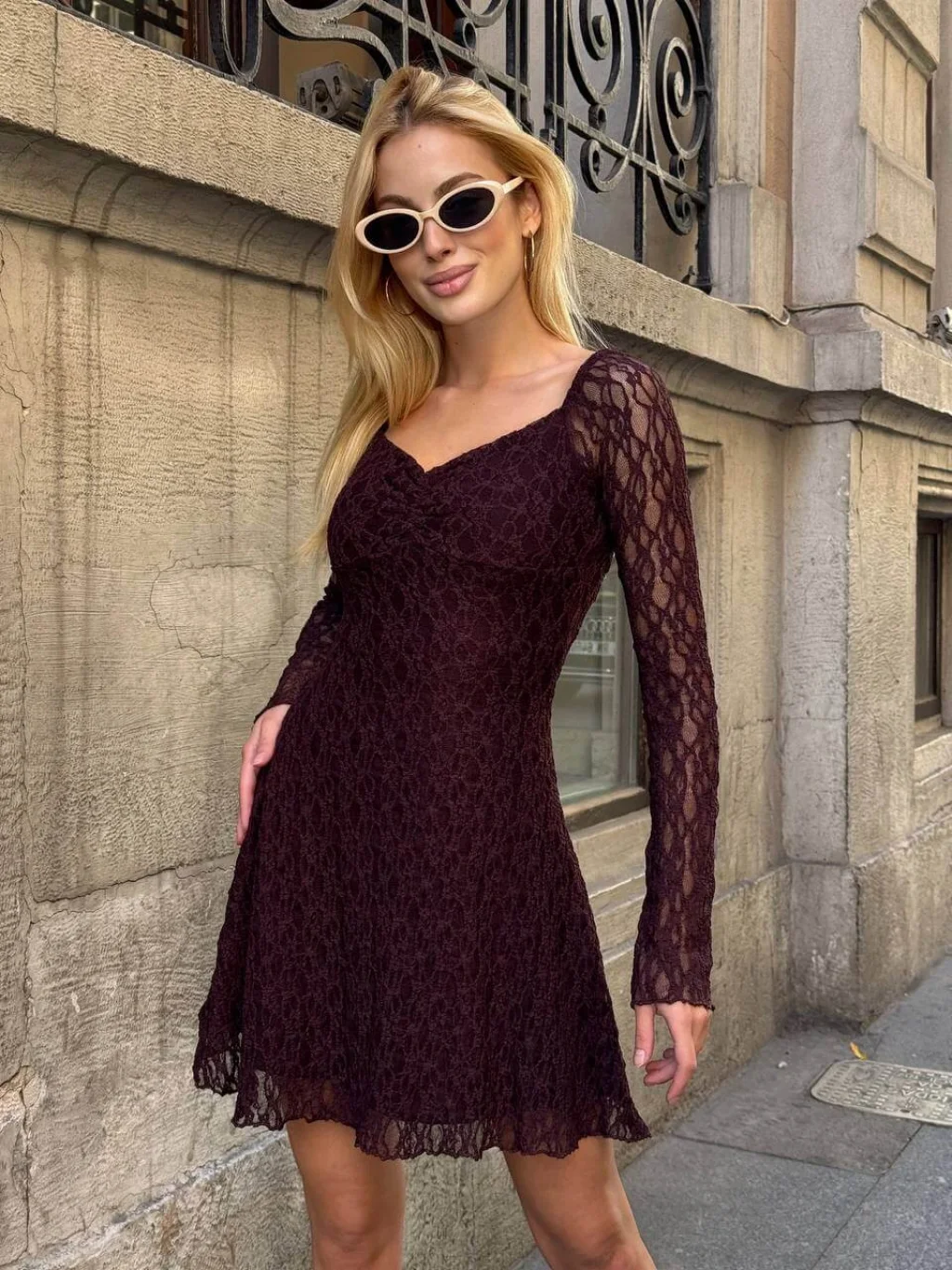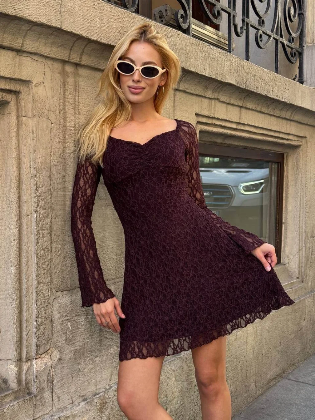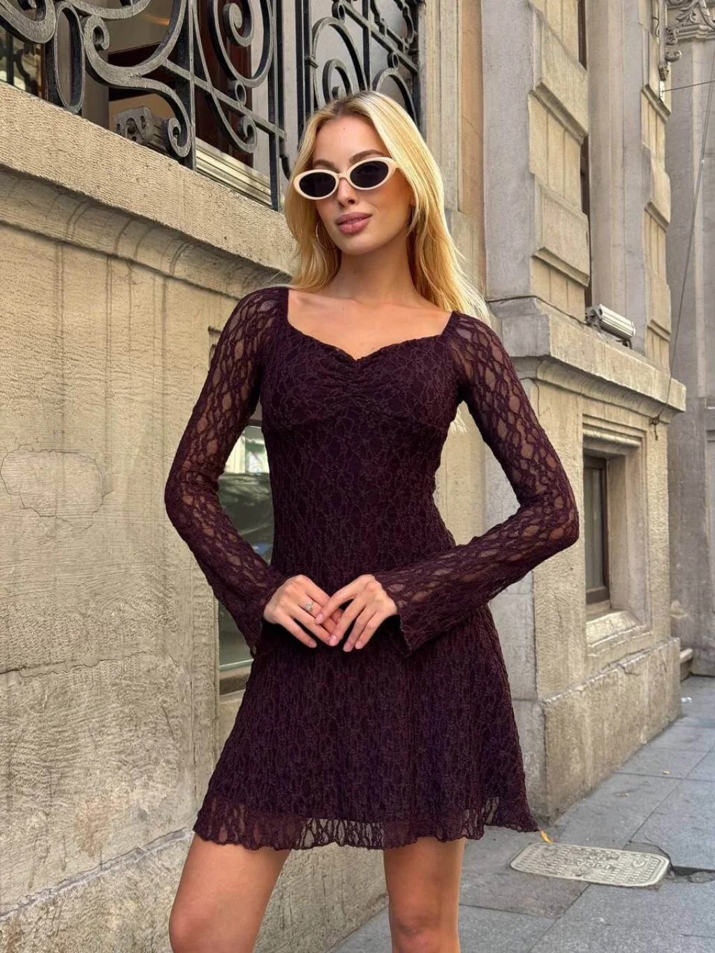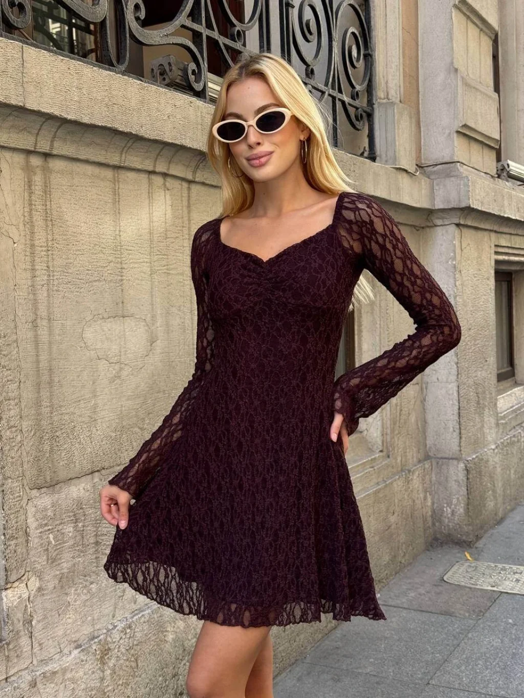 Zarafetin ve romantizmin en saf hali... Kalp Yaka Dantel Mini Elbise, özel anlarınıza eşlik etmek ve sizi masalsı bir görünüme kavuşturmak için tasarlandı. Her detayıyla feminen bir duruş sergileyen bu parça, gardırobunuzun en özel köşesini hak ediyor.