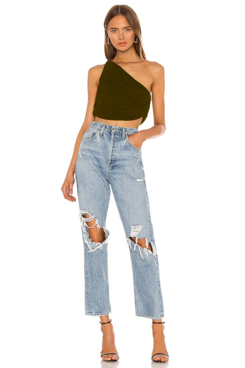 Drapelerin sanatsal dokunuşuyla zenginleşen Tek Omuz Crop Bluz, heykelsi duruşu ve modern tasarımıyla görünümünüze iddialı bir imza atmak için tasarlandı.