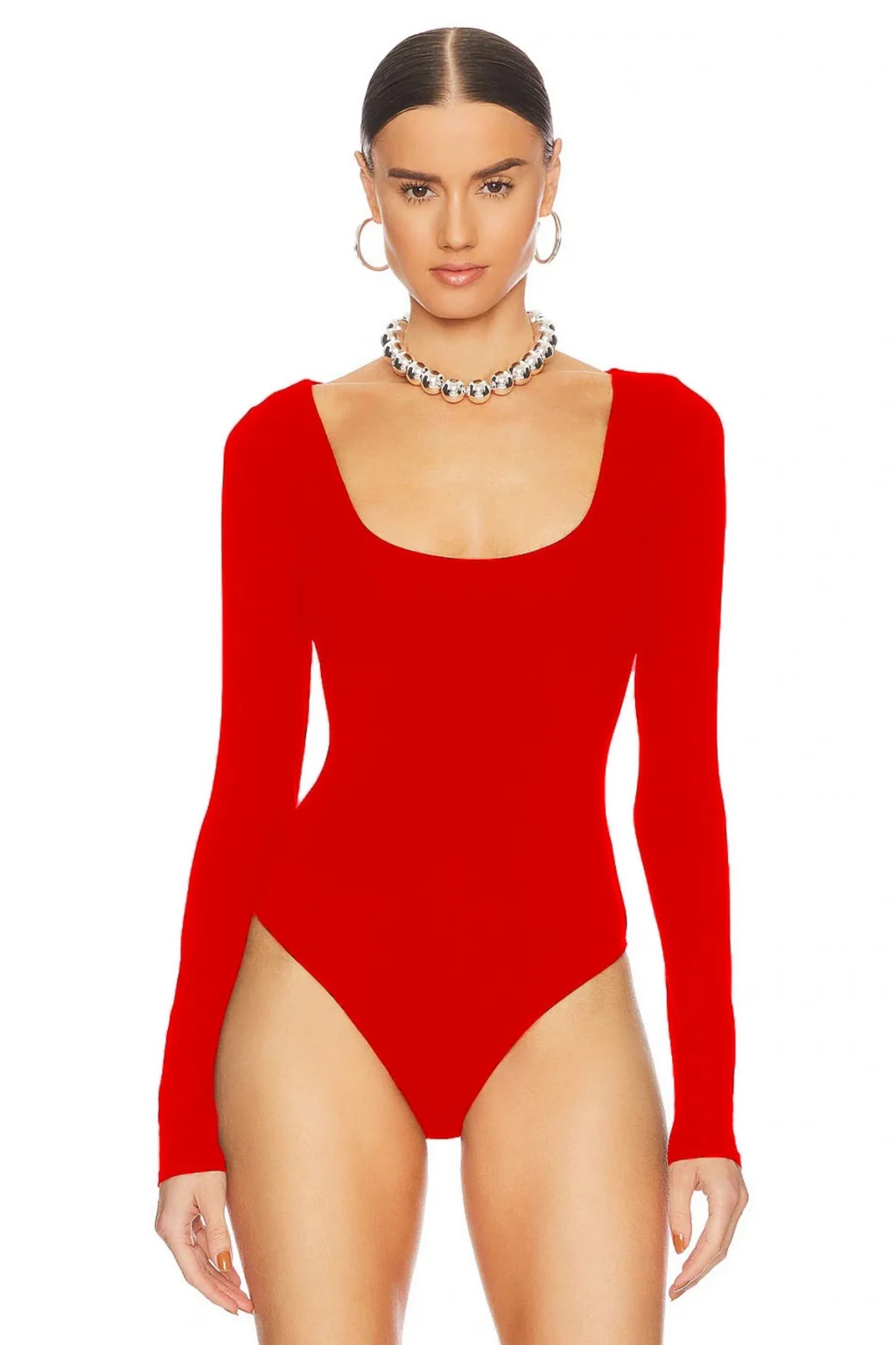 Gardırobunuzun en şık temel parçalarından biri olacak bu kırmızı U yaka bodysuit, her stile zahmetsizce uyum sağlar. Sandy kumaşıyla hem gündüz hem de gece kombinleriniz için mükemmel bir temel oluşturur. Onu yüksek bel bir jean ile günlük şıklığa veya bir kalem etek ve gösterişli bir kolyeyle geceye taşıyabilirsiniz.