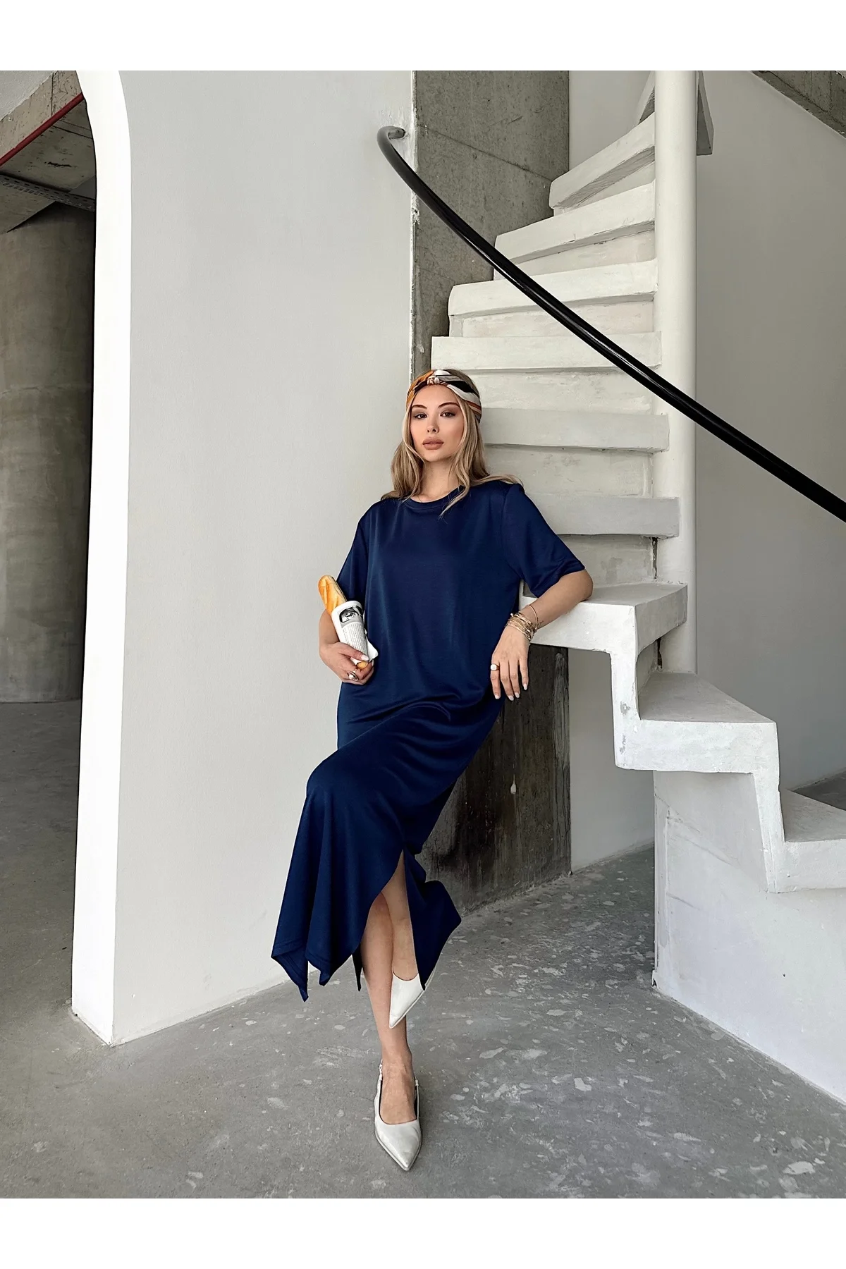 Lacivertin asil duruşu, en konforlu tasarımla buluştu... Modal Kumaş Tişört Elbise, ipeksi dokusu ve dökümlü salaş kesimiyle gün boyu üzerinizden çıkarmak istemeyeceğiniz yeni favoriniz olacak.