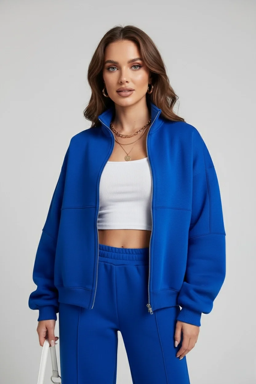 Çok Yönlü Tasarım: Set olarak mükemmel bir uyum sunarken, fermuarlı ceketi jean'lerinizle, palazzo pantolonu ise şık bir bluz veya triko ile ayrı ayrı kombinleyebilirsiniz.