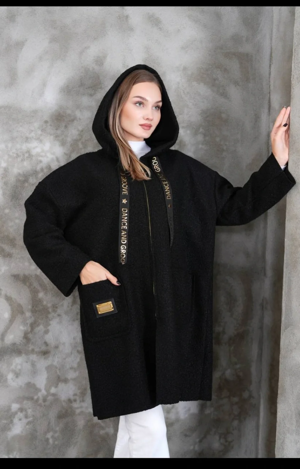 Sokak modasının sıcak ve stil sahibi yorumu... Kapüşonlu Oversize Buklet Hırka, soğuk havalarda konfordan ödün vermeden iddialı bir tarz yaratmak için tasarlandı. Yumuşacık dokusu ve havalı detayları ile kış gardırobunuzun favorisi olacak.