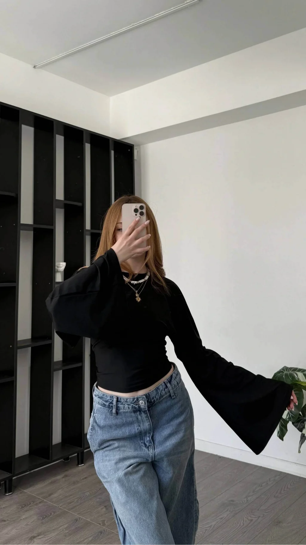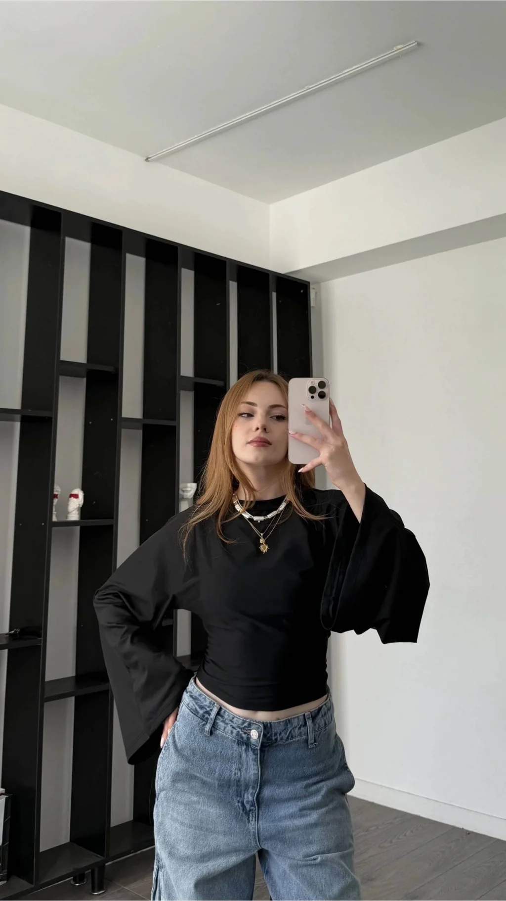 Sade, şık ve iddialı... Geniş Kollu Dalgıç Kumaş Crop Bluz, minimalist gövde tasarımını dramatik kol detaylarıyla birleştirerek tüm dikkatleri üzerinize çekecek modern bir parça sunuyor.