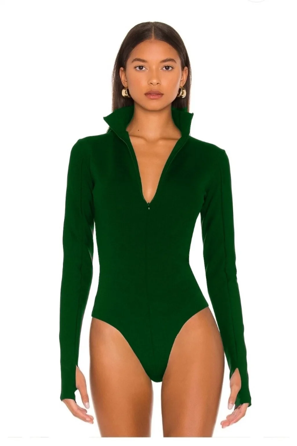 Modern, güçlü ve iddialı bir stilin anahtarı Dik Yaka Fermuarlı Bodysuit, özgün tasarımı ve vücudu saran mükemmel kalıbıyla tüm bakışları üzerinize çekmek için tasarlandı.