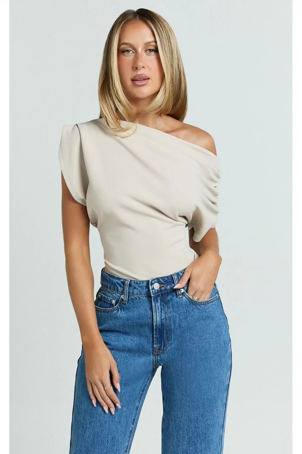 Omzu Düşük Asimetrik Yaka Bluz