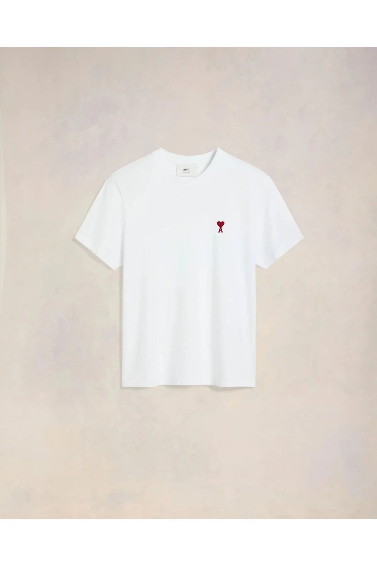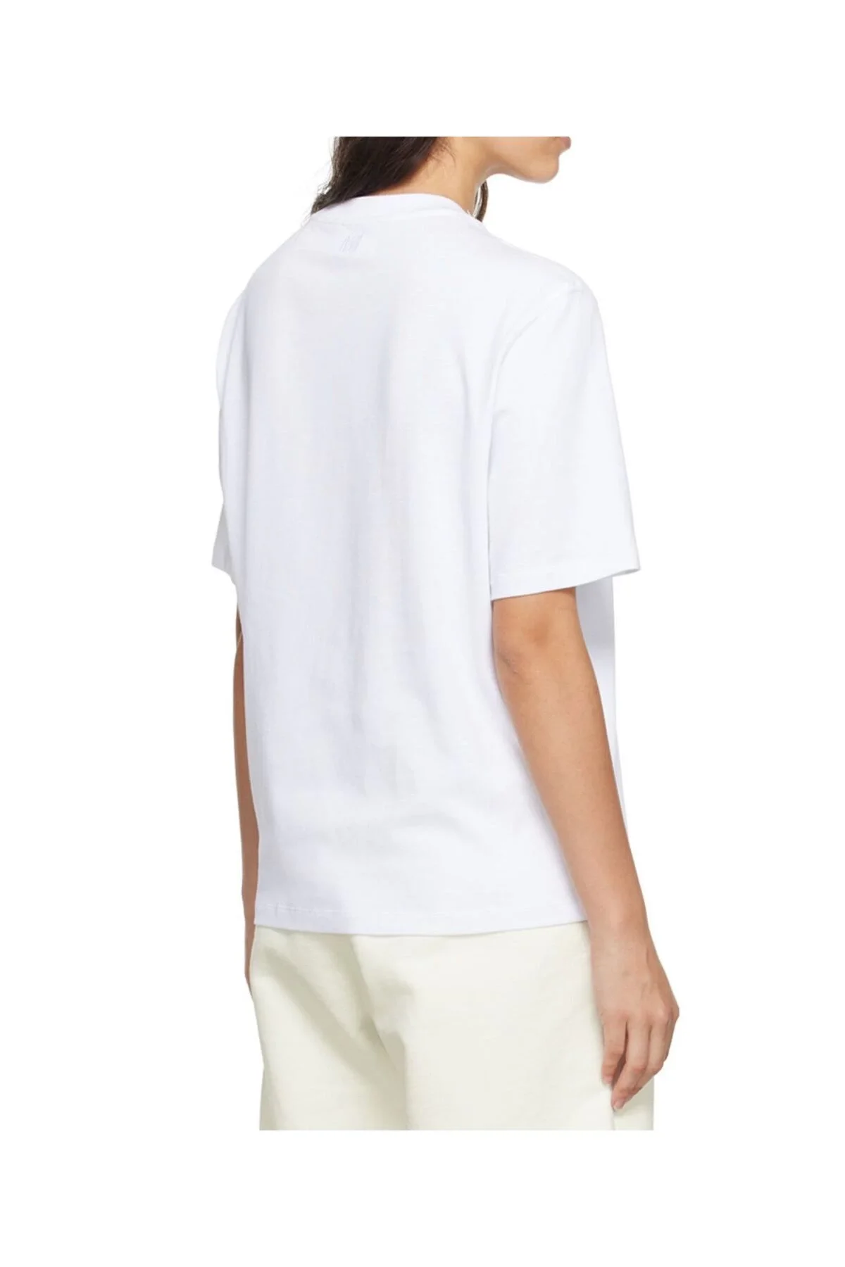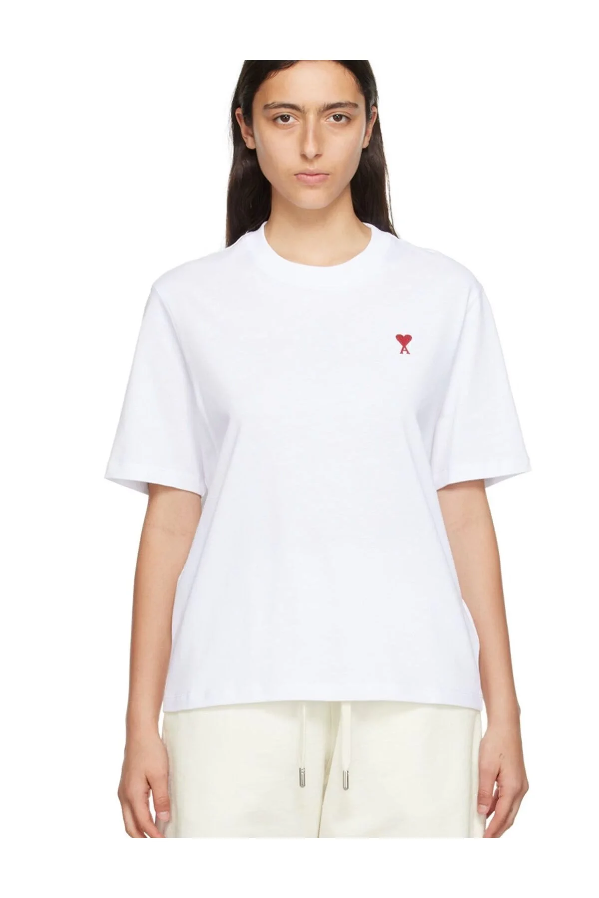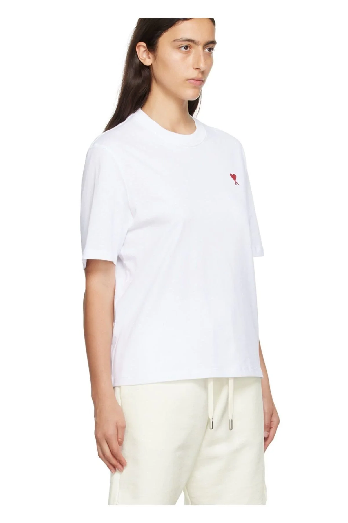 Kadın Minimal Kalp Nakışlı Bisiklet Yaka Dökümlü Salaş Rahat Kesim Oversize Tişört - Beyaz