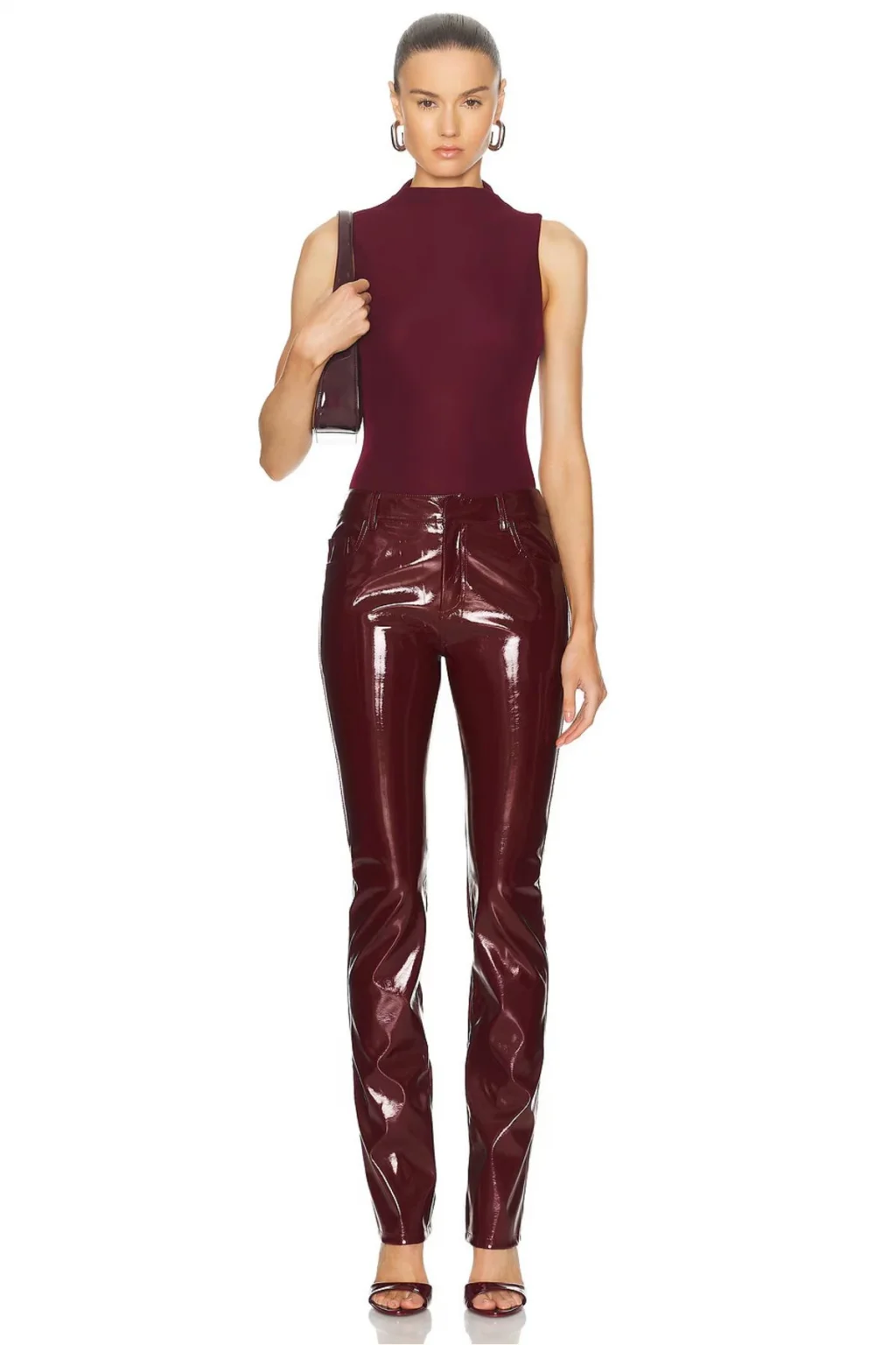 MetuCa Kadın Bordo Dik Yaka Kolsuz Jarse Kumaş Vücudu Saran Tanga Kesim Bodysuit Zıbın