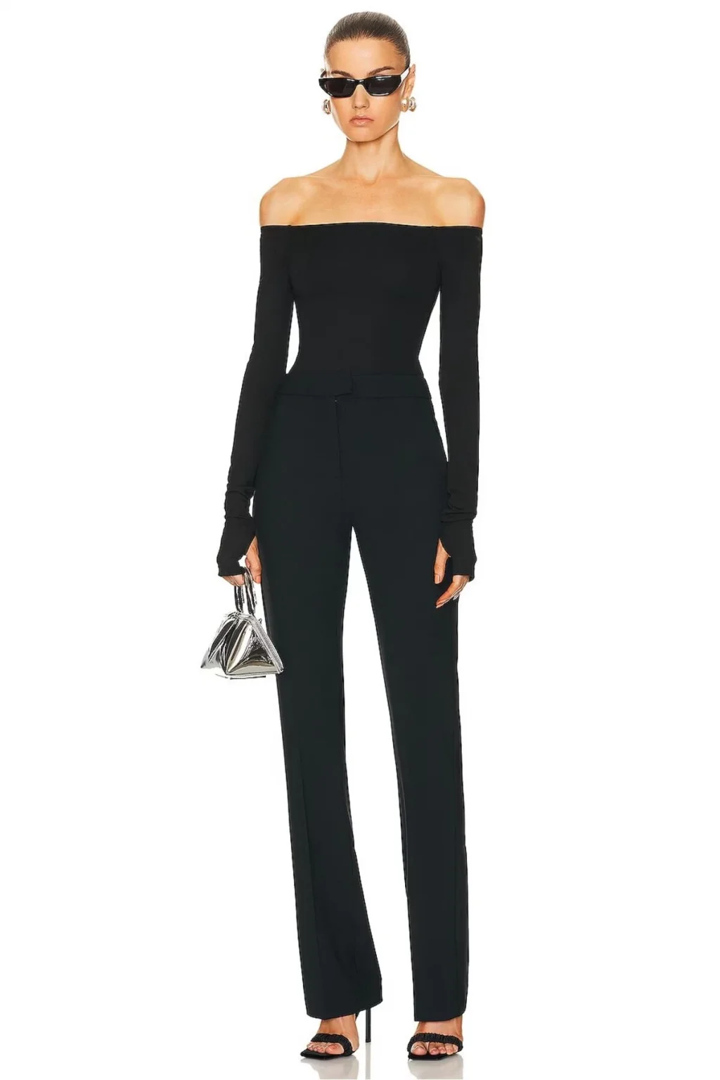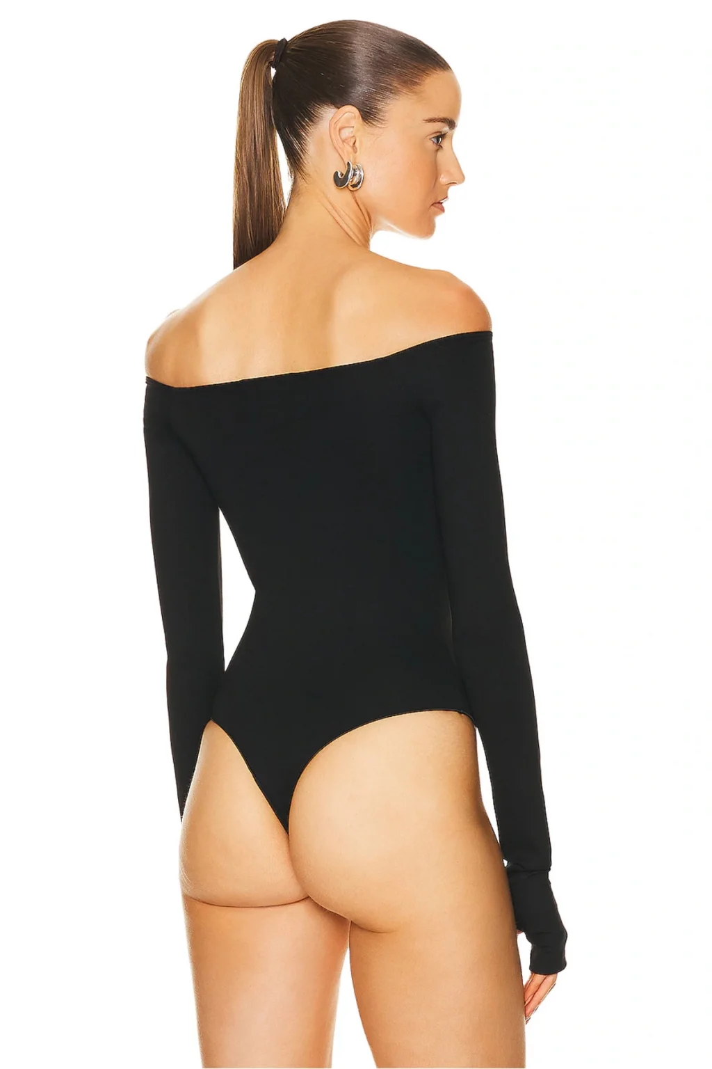 Siyah Straplez Yaka Parmak Geçmeli Bodysuit