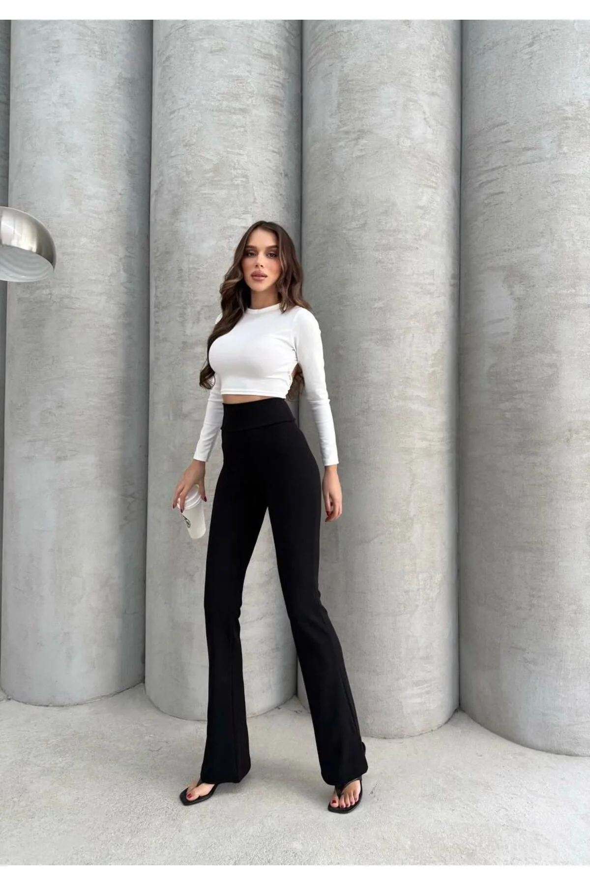 Kadın Yüksek Bel Toparlayıcı Vücudu Saran Scuba Kumaş İspanyol Paça Tayt Pantolon - Siyah